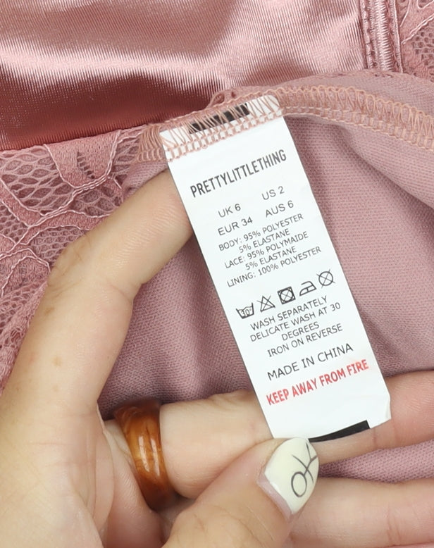 PrettyLittleThing Pink Lace Dress, Size 6, Women's Sleeveless