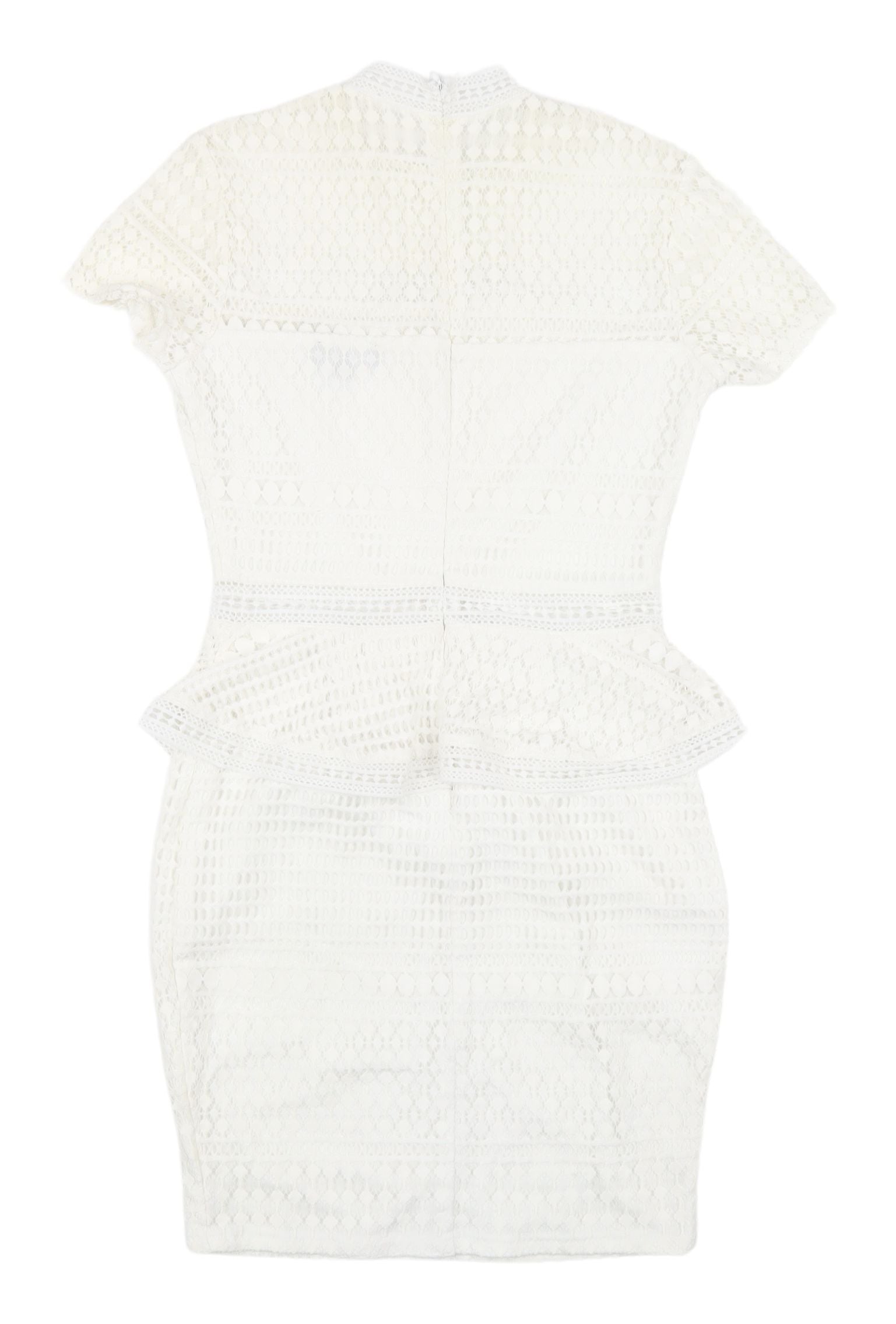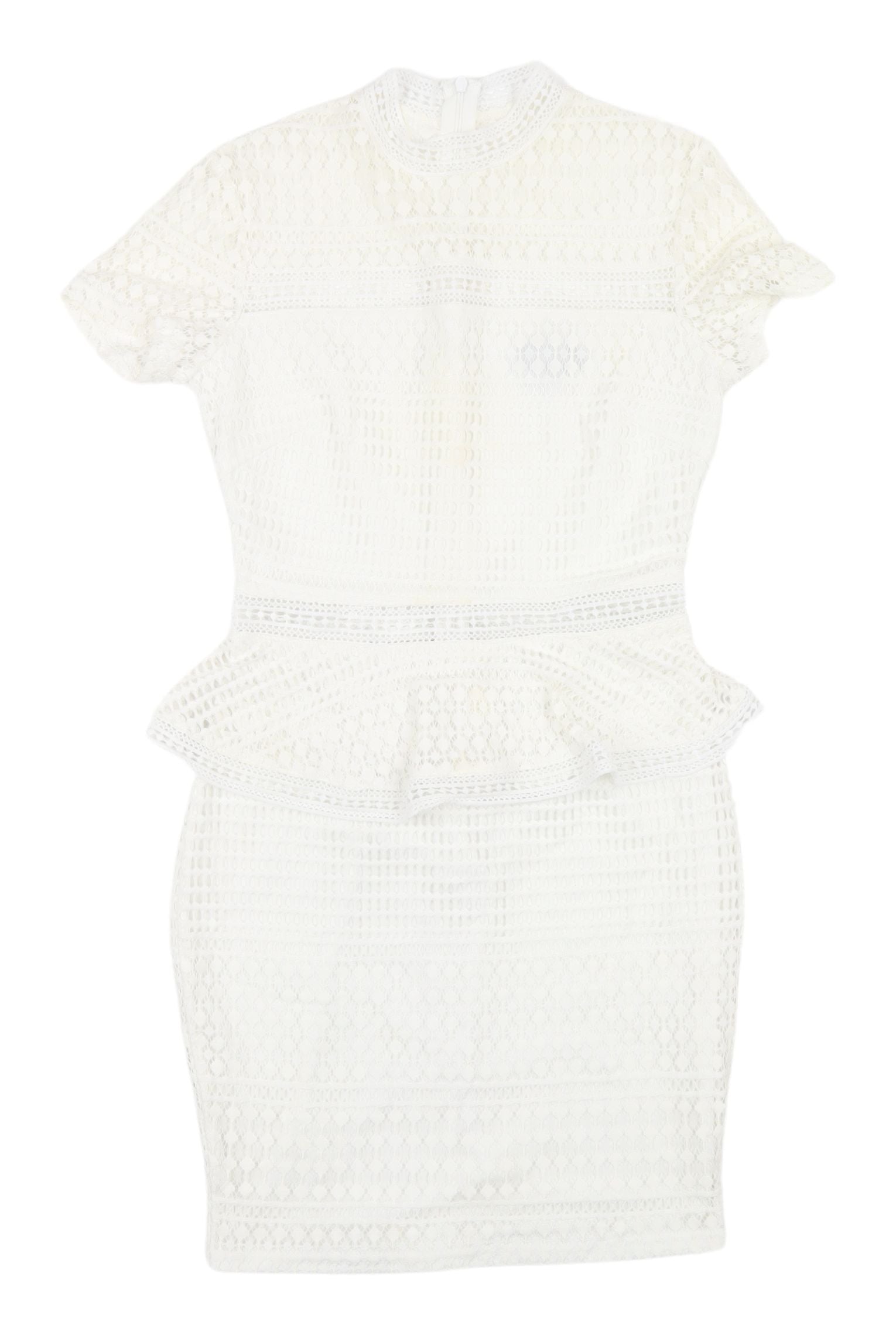 PrettyLittleThing White Peplum Lace Dress, Size 8, New