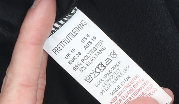 PrettyLittleThing Women Black Cropped Long Sleeve High Neck Top Size 10