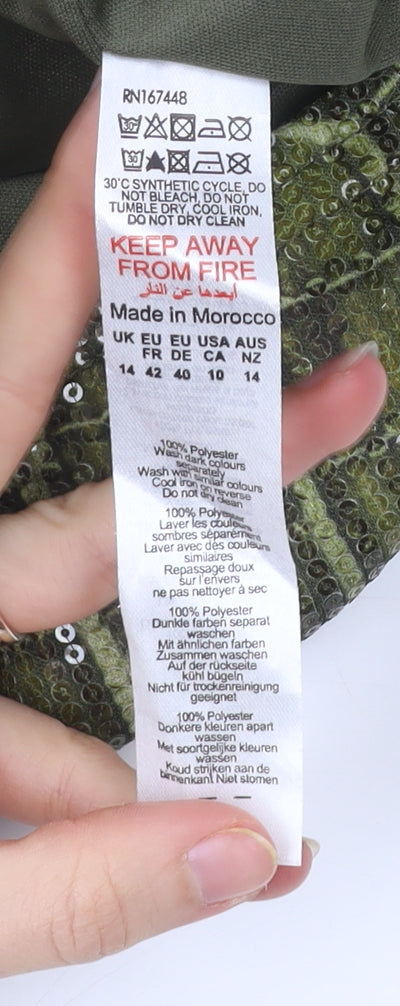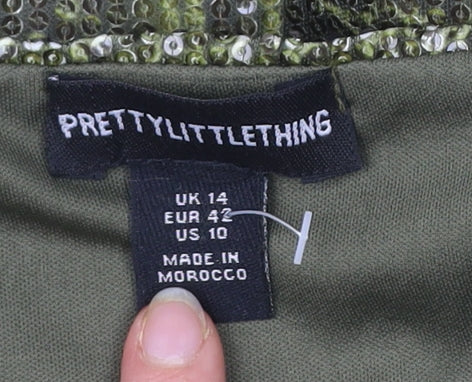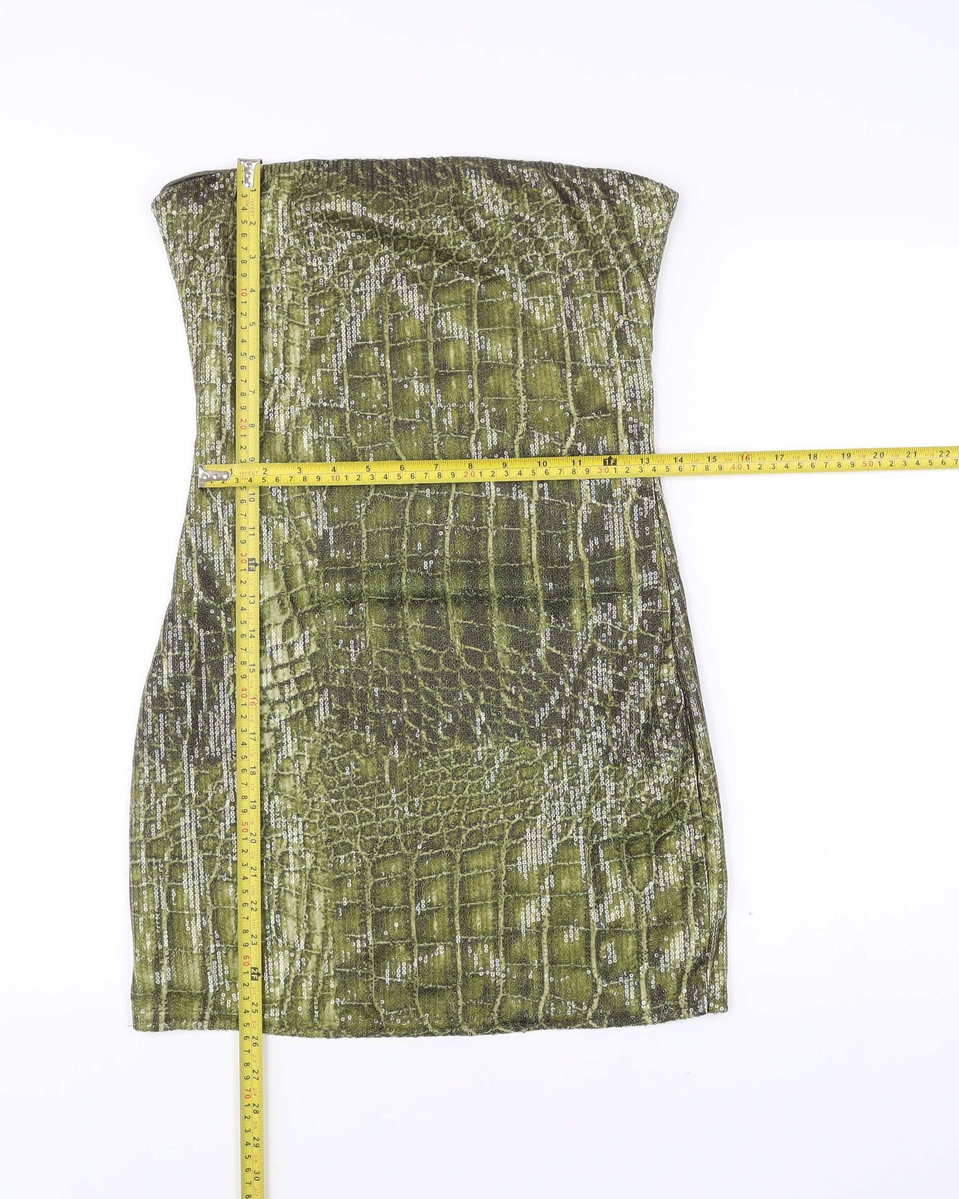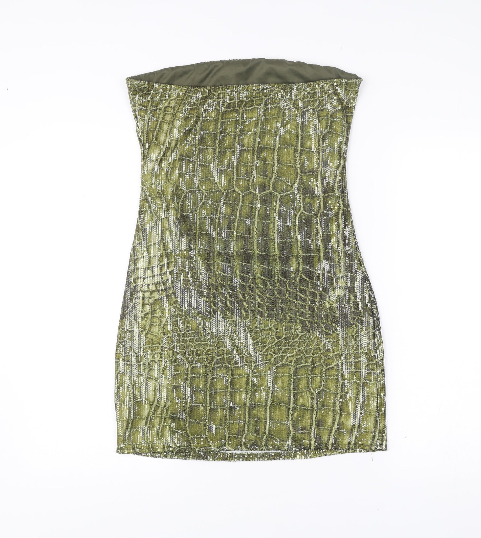 PrettyLittleThing Women Green Animal Print Sequin Strapless Bodycon Dress UK 14
