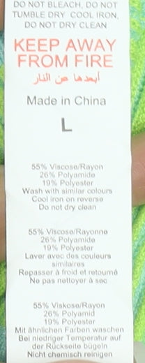 - Material Breakdown: 55% Viscose 26% Polyamide 19% Polyester