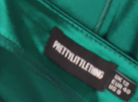 PrettyLittleThing Women Green Size 12 Satin Slip Halter Mini Dress