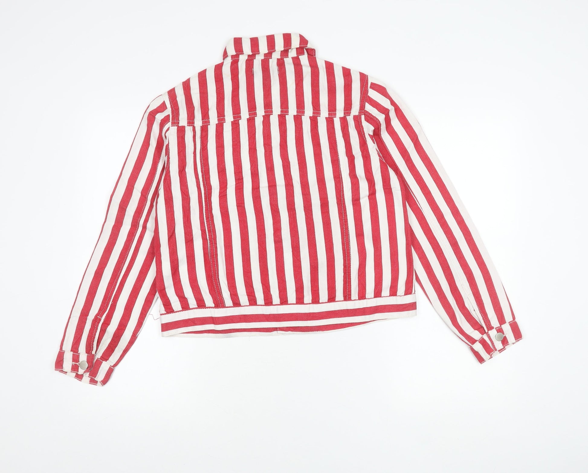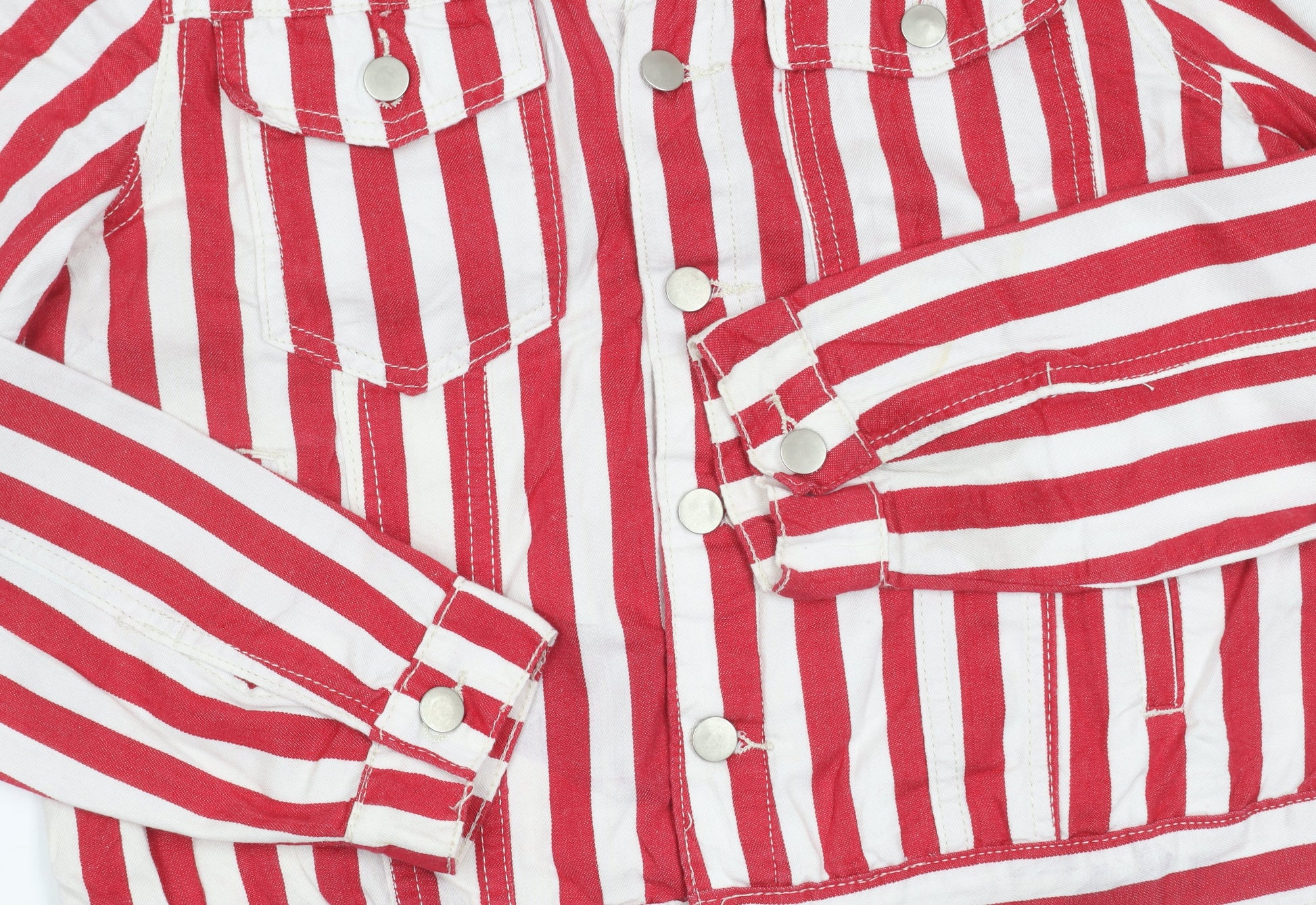 PrettyLittleThing Women Red Striped Cropped Button-Up Jacket Size 8