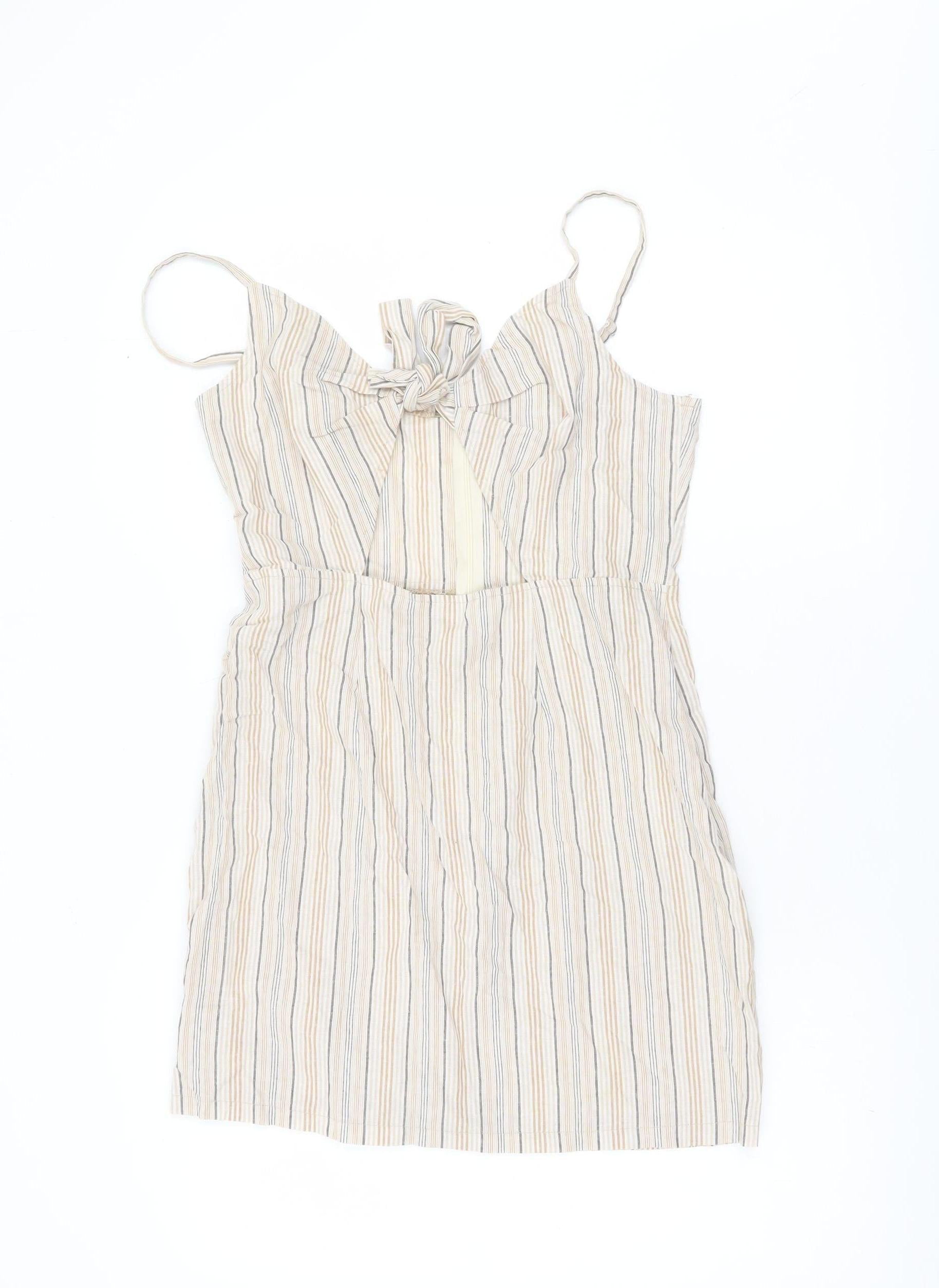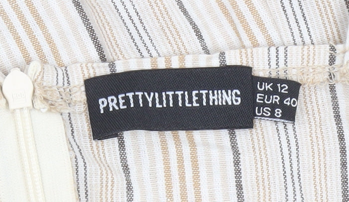 PrettyLittleThing Women’s Beige Striped Slip Dress UK 12