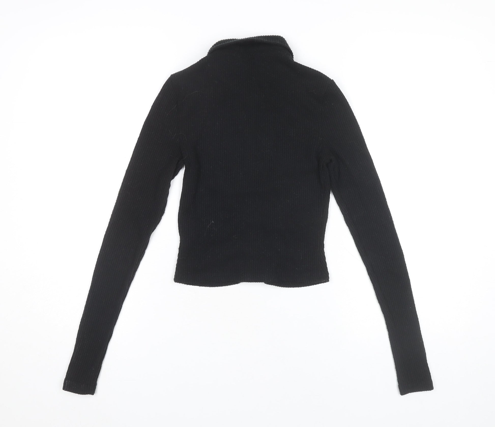 PrettyLittleThing Women’s Black Cropped Button-Up Shirt Size 8
