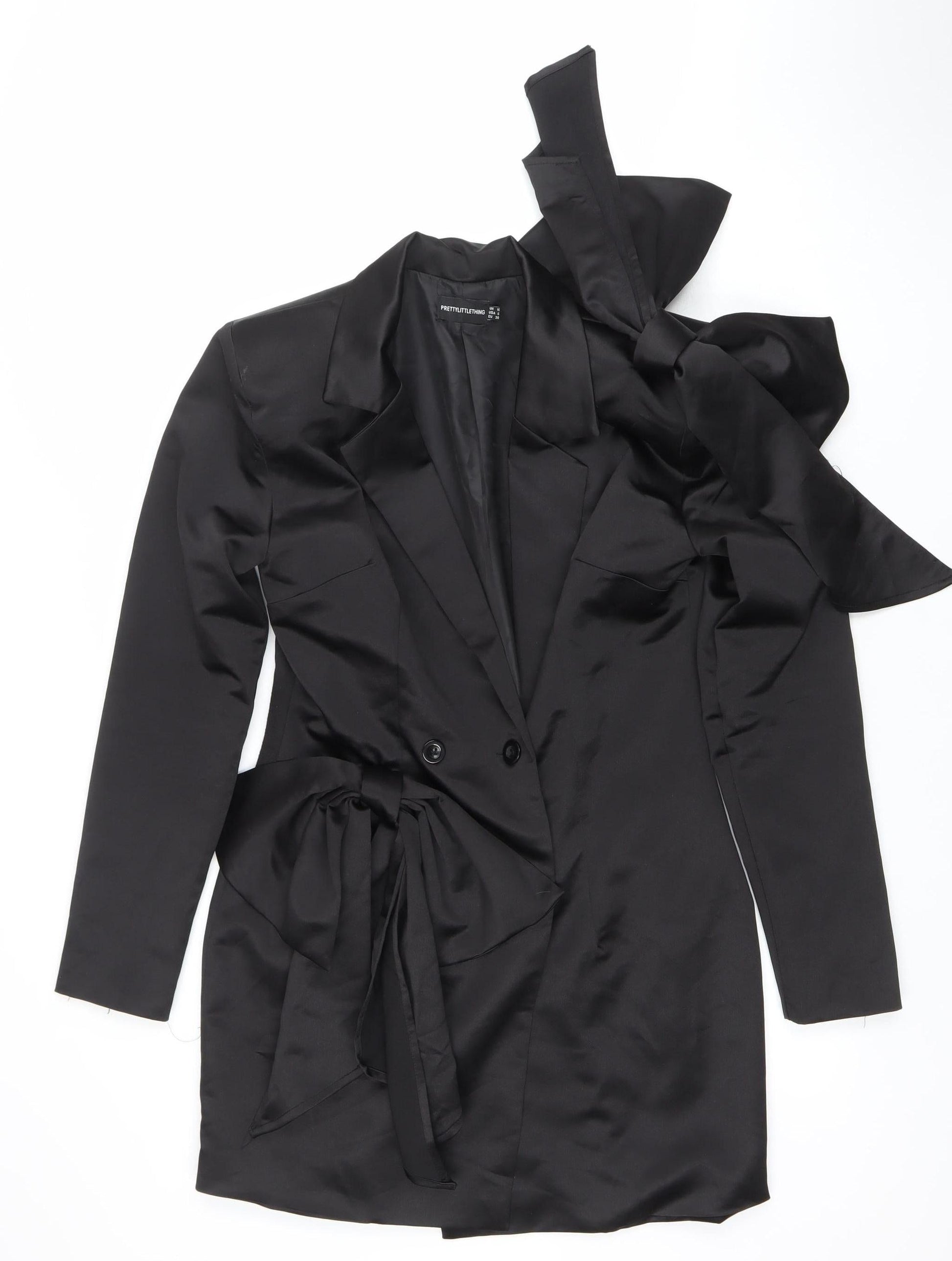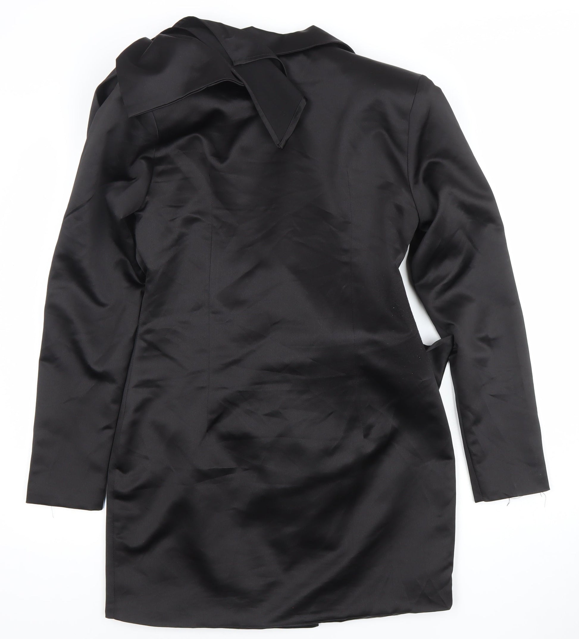 PrettyLittleThing Women’s Black Jacket Dress Size 10 Long Sleeve Satin
