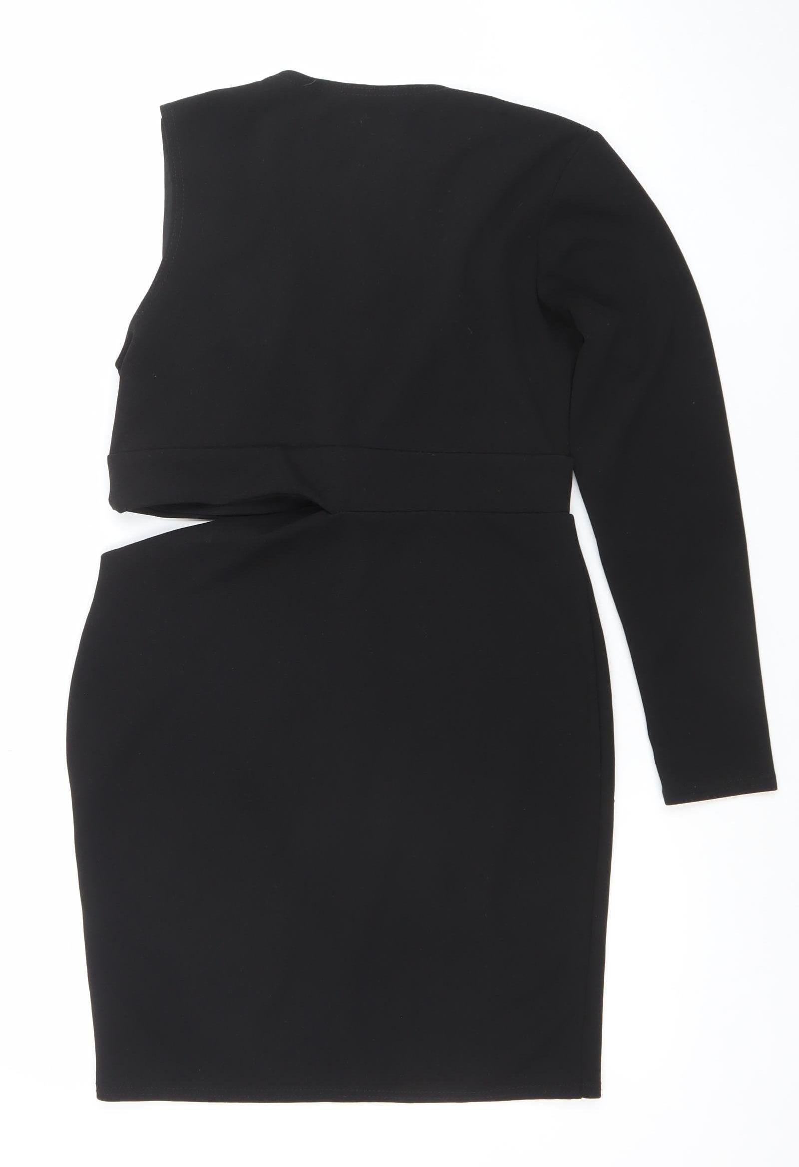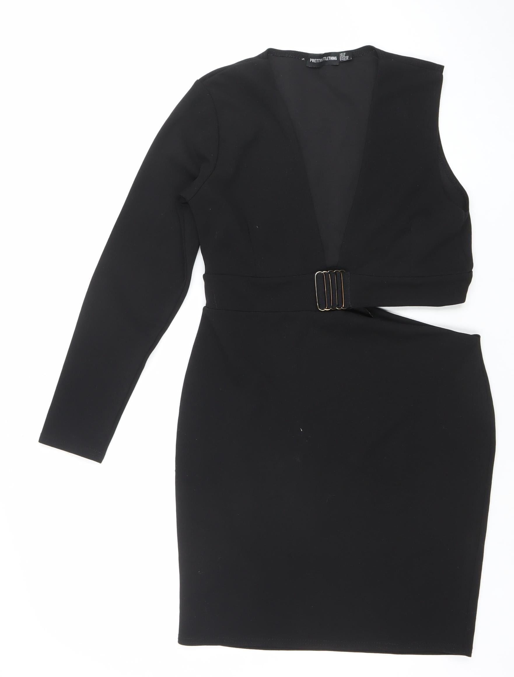 PrettyLittleThing Women’s Black Size 12 Bodycon Belted One Shoulder Dress