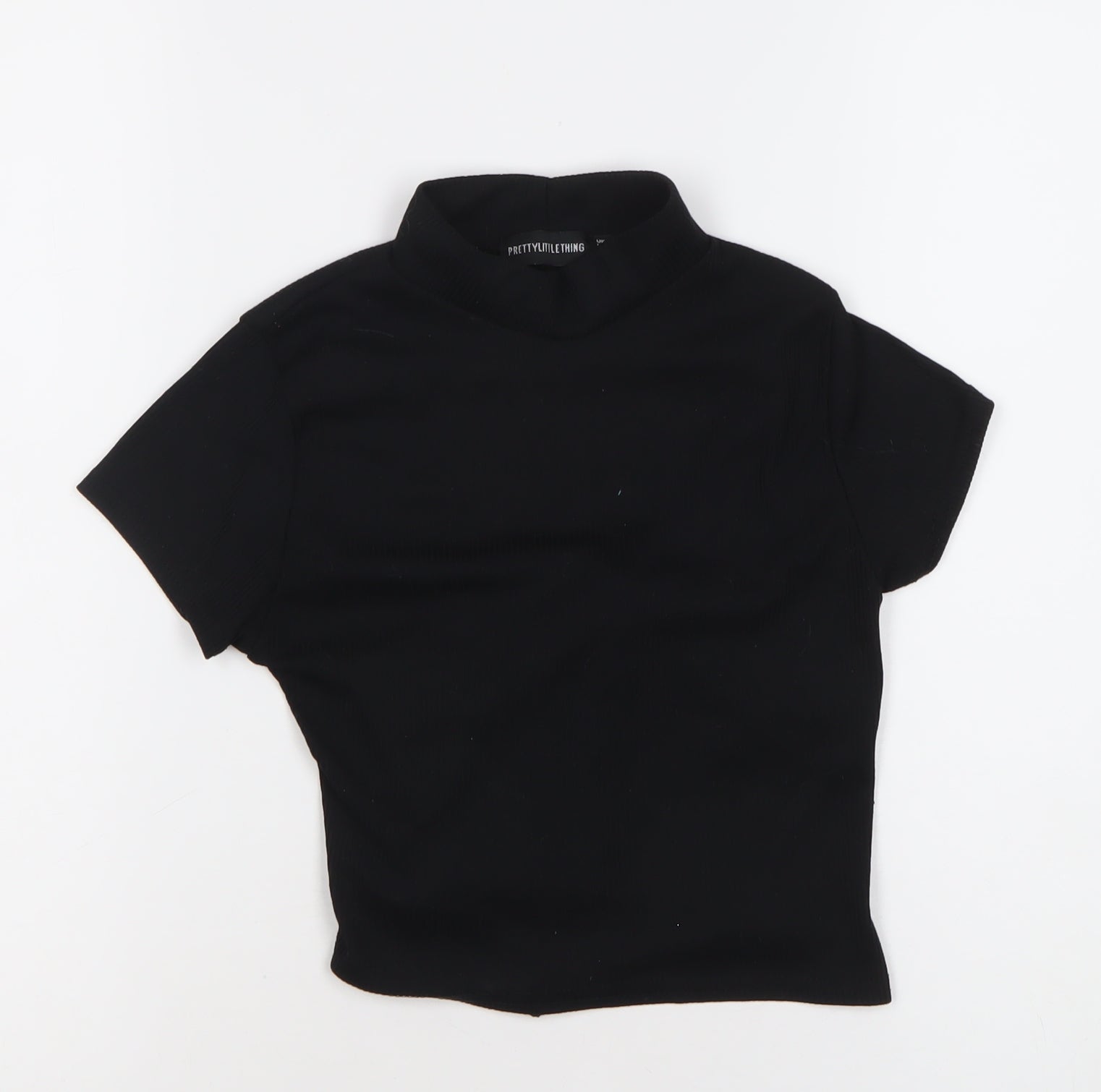 PrettyLittleThing Women’s Black Size 8 Cropped Mock Neck T-Shirt