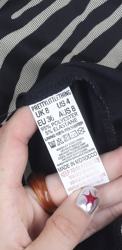 PrettyLittleThing Women’s Black Zebra Print Slip Dress Size 8