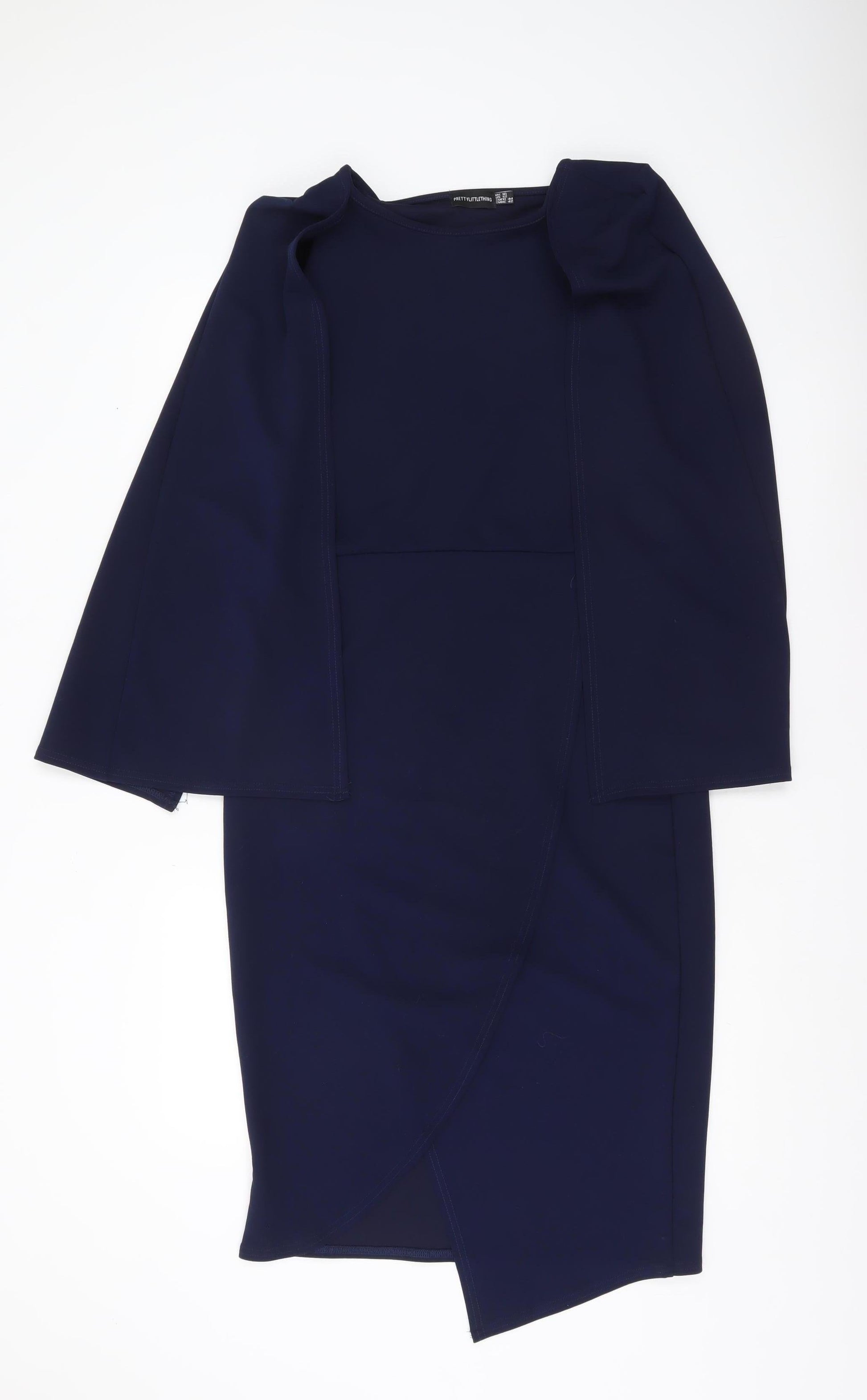 PrettyLittleThing Women’s Blue Size 16 Bodycon Cape Sleeve Dress