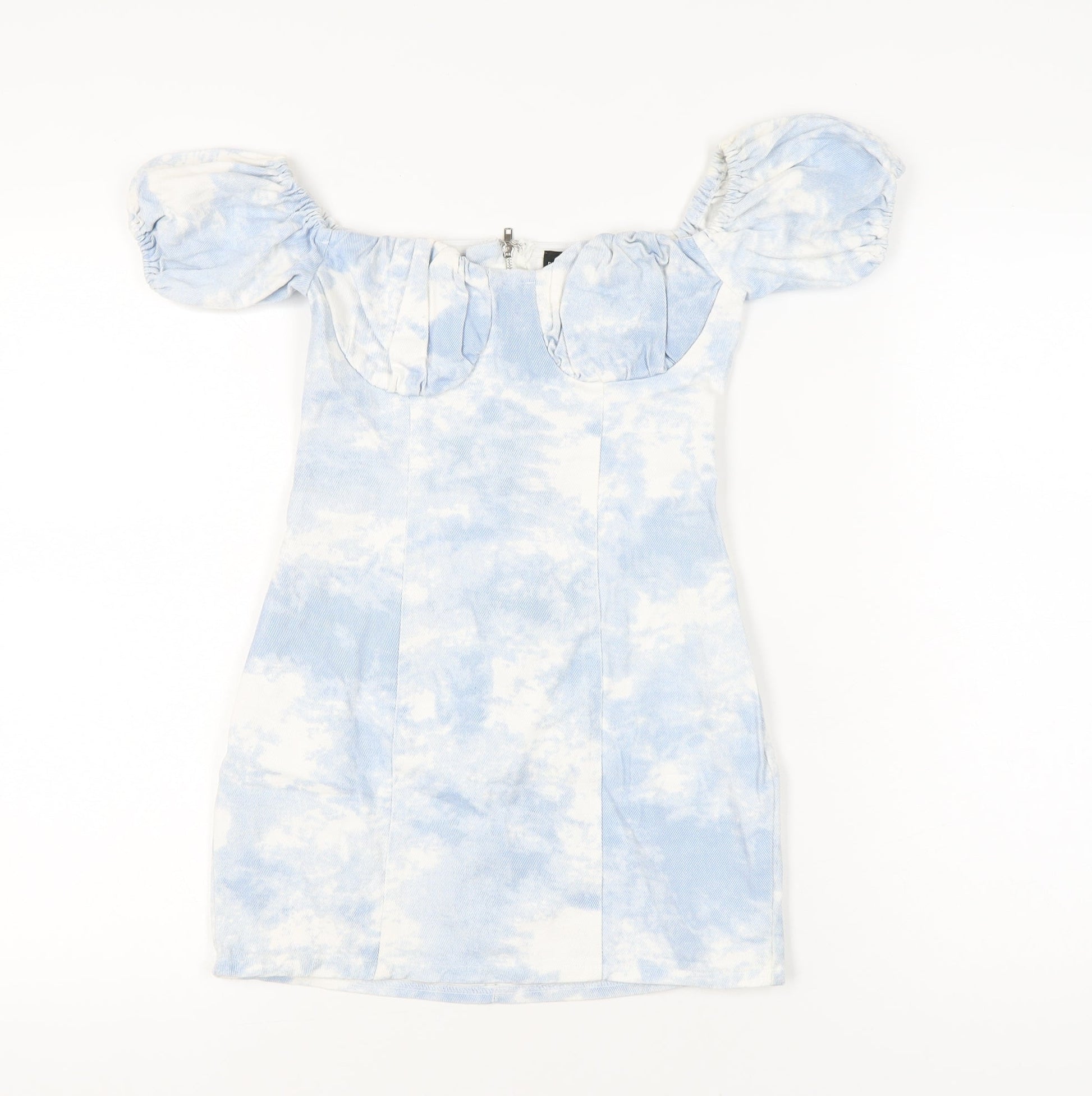 PrettyLittleThing Women’s Blue Tie Dye Puff Sleeve Bodycon Dress Size 2