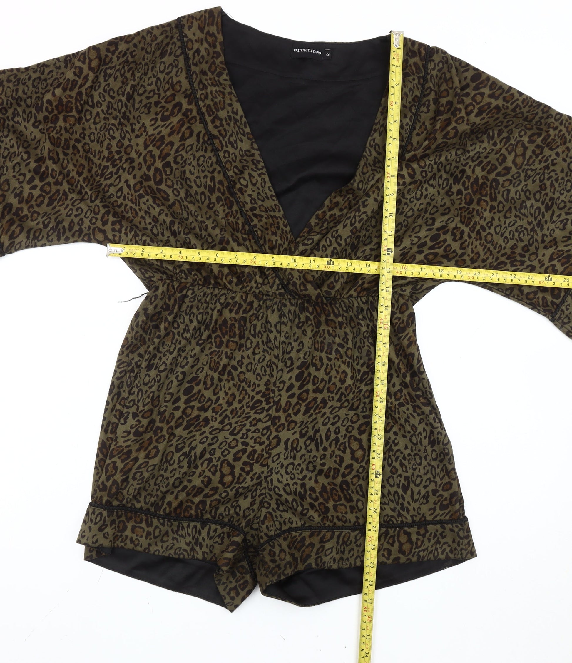 PrettyLittleThing Women’s Brown Animal Print V-Neck Playsuit Size 12