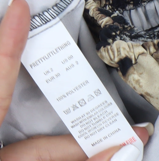PrettyLittleThing Women’s Brown Leopard Mini Dress Size 2 Puff Sleeve