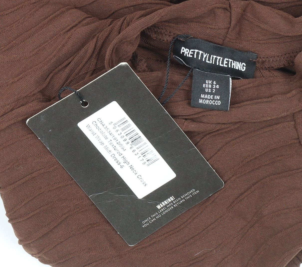 PrettyLittleThing Women’s Brown Midi Wrap Dress Size 6 High Neck