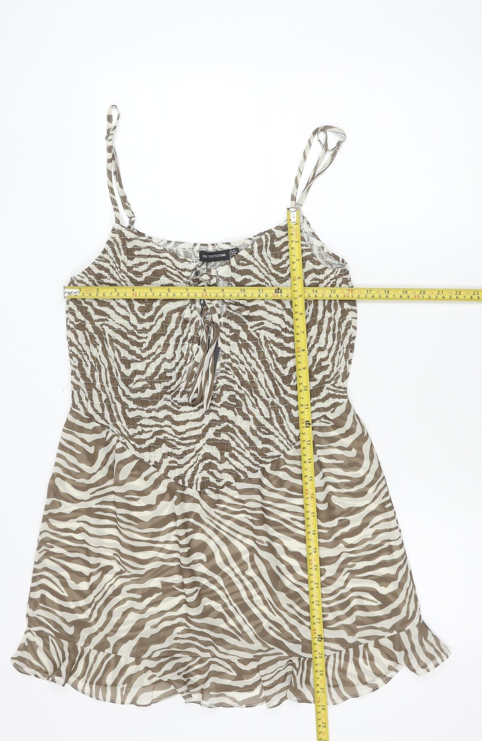 PrettyLittleThing Women’s Brown Zebra Print Slip Dress Size 14