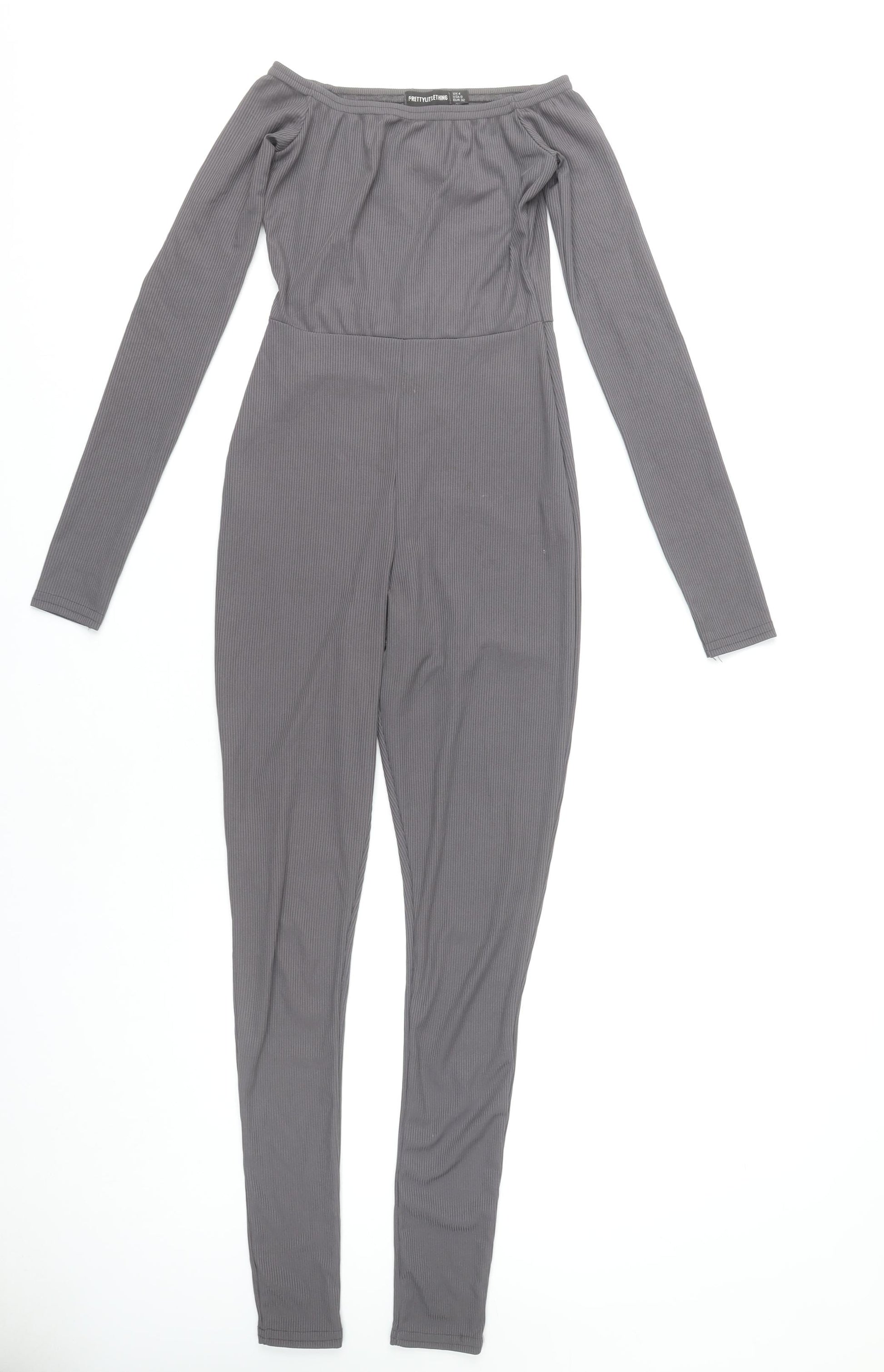PrettyLittleThing Women’s Grey Off-Shoulder Ribbed Catsuit Size 4