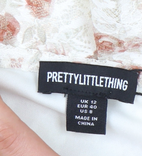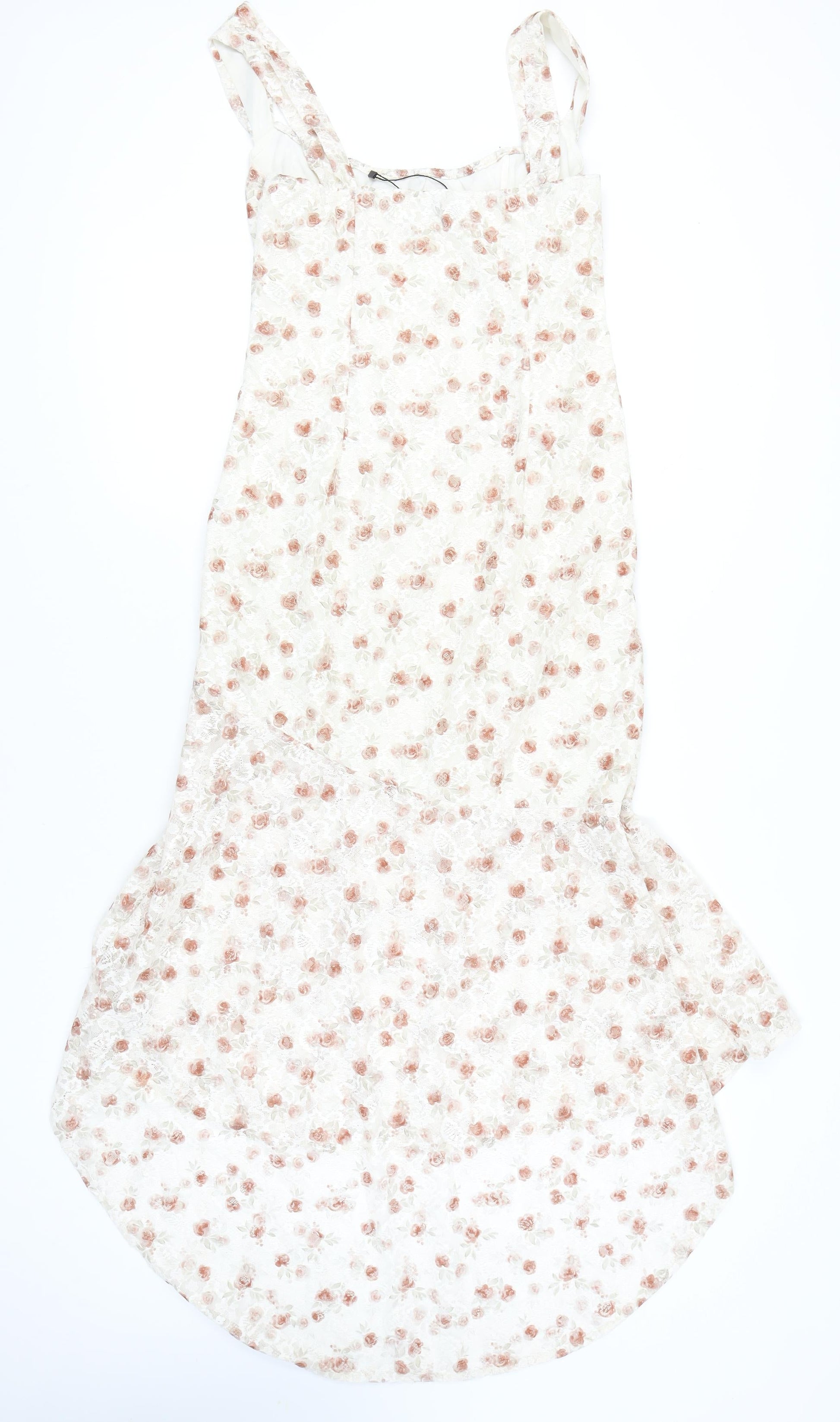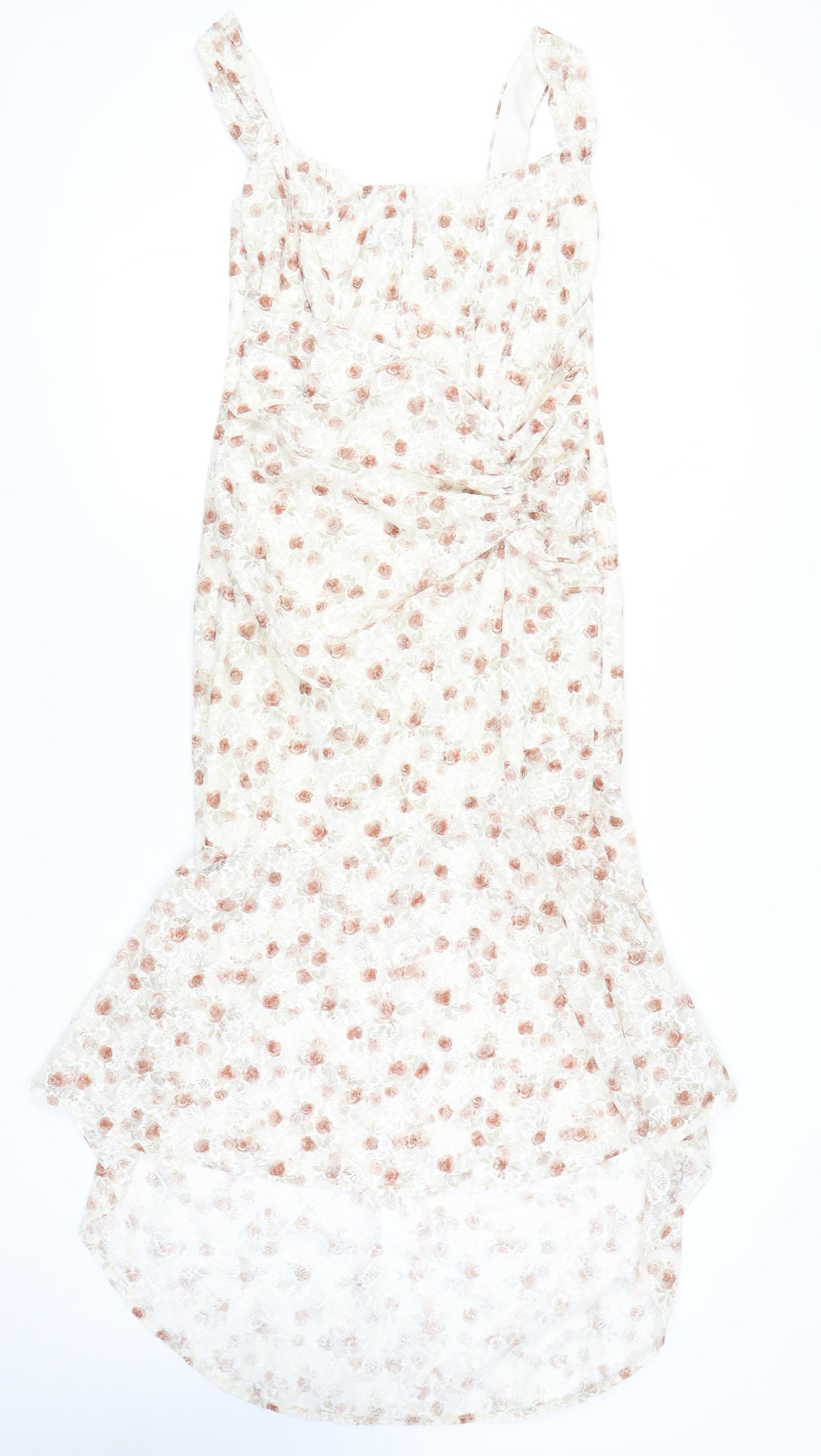 PrettyLittleThing Women’s Ivory Floral Mermaid Hi-Low Dress UK 12