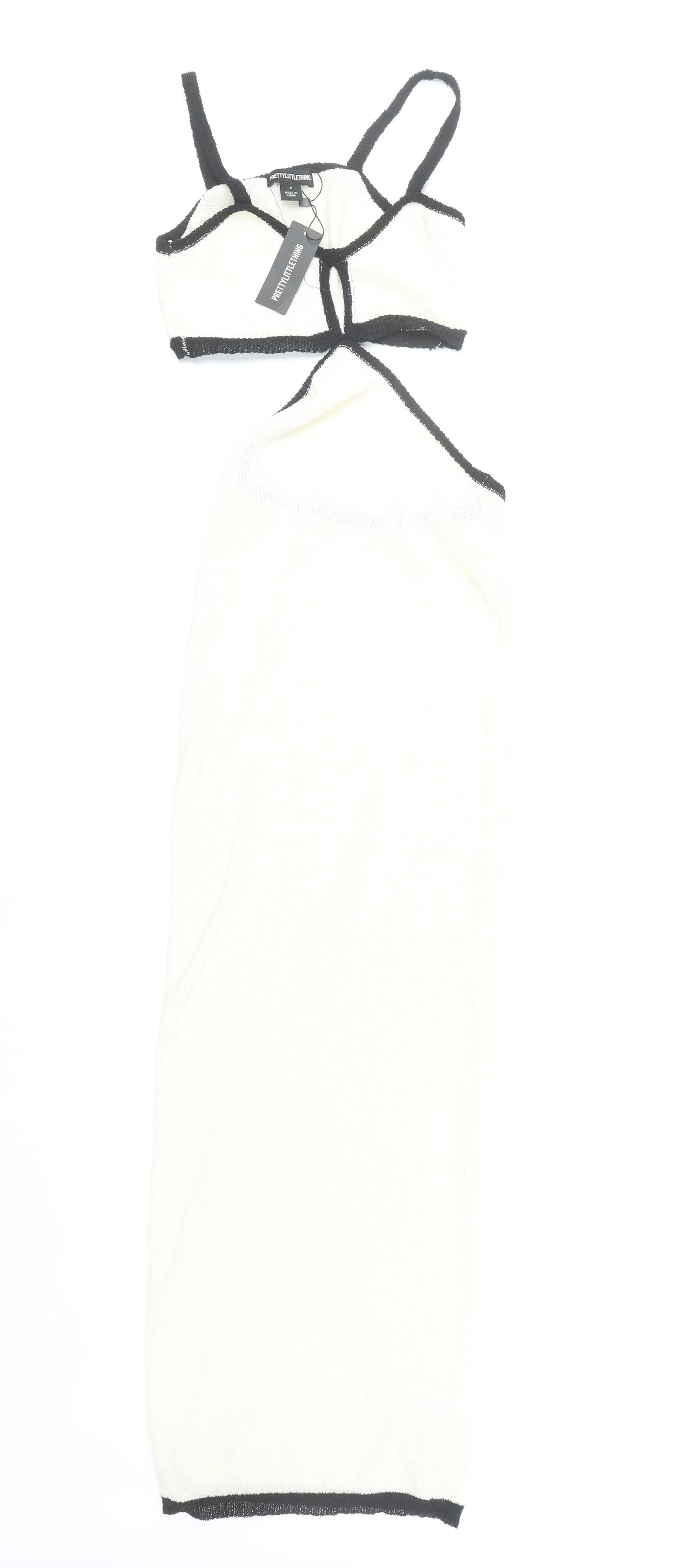 PrettyLittleThing Women’s Ivory Strappy Knit Dress S
