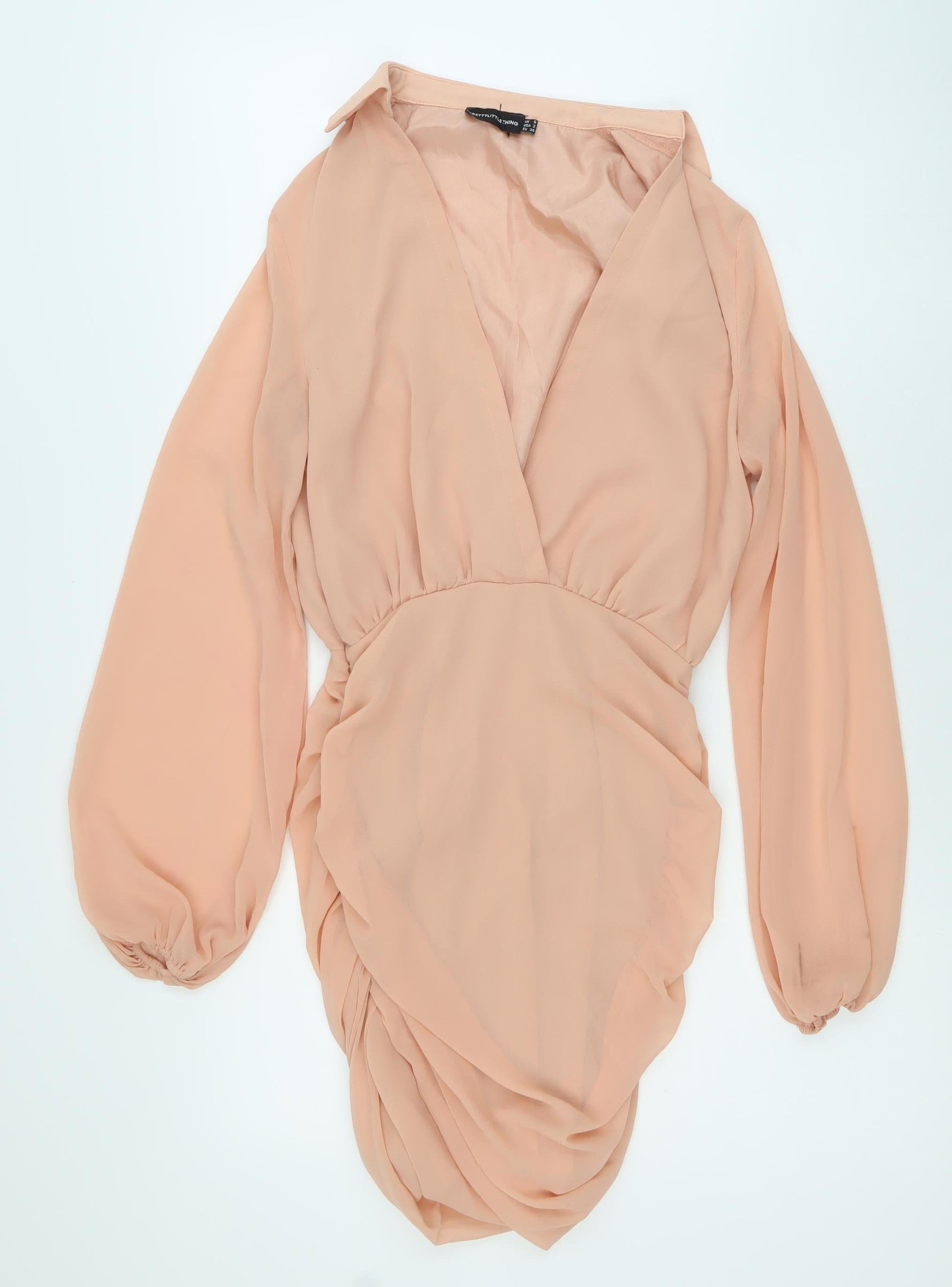 PrettyLittleThing Women’s Pink Size 6 Ruched Chiffon Bodycon Dress