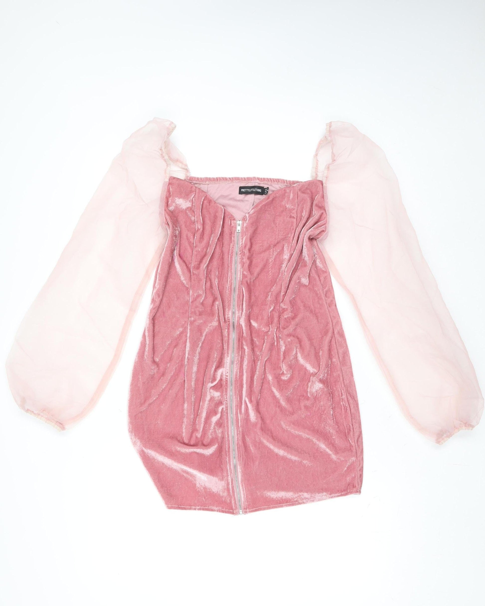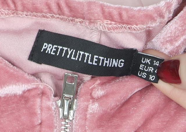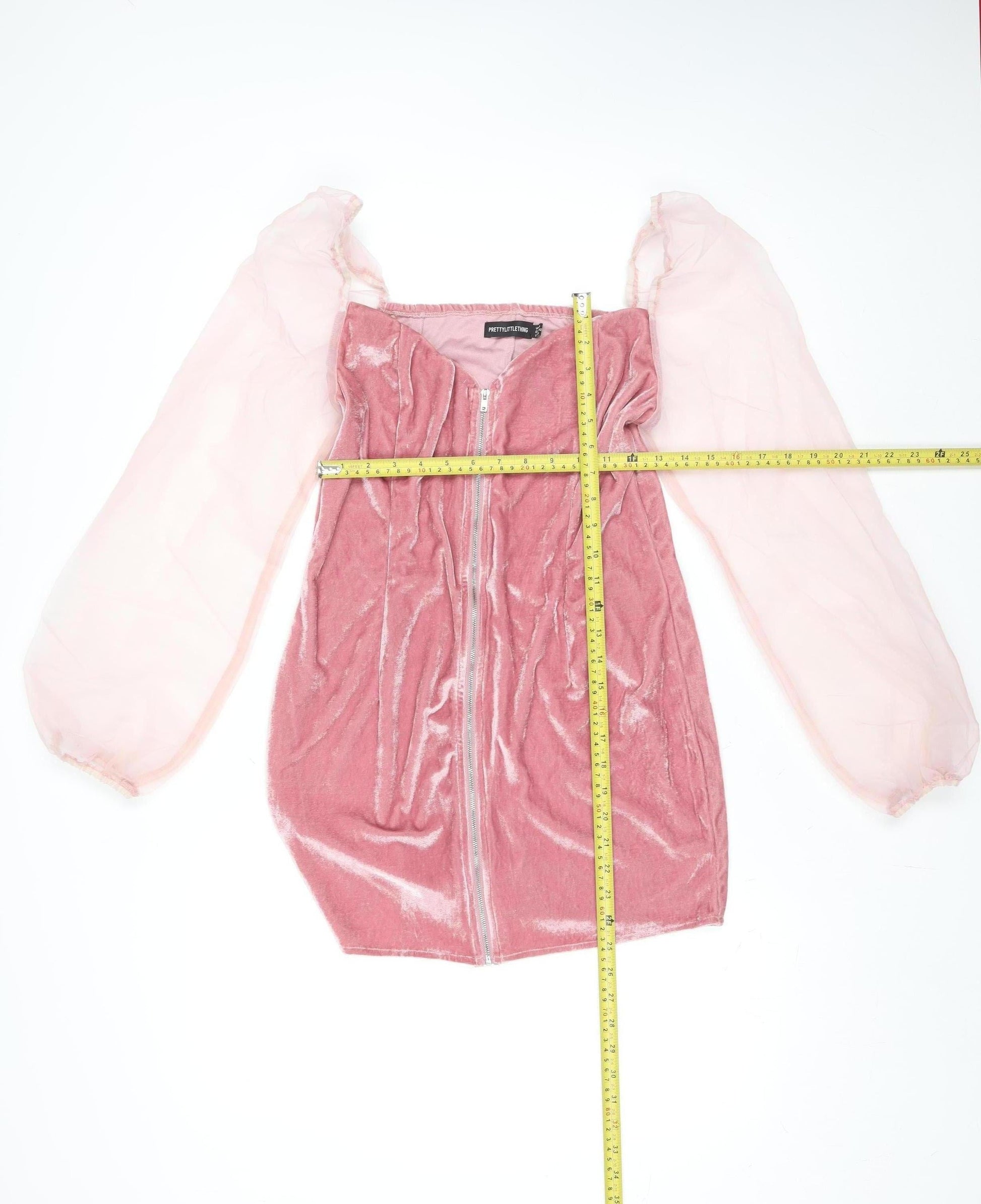 PrettyLittleThing Women’s Pink Velvet Puff Sleeve Bodycon Dress Size 14