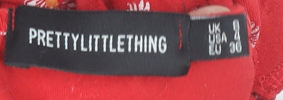 PrettyLittleThing Women’s Red Floral Slip Midi Dress Size 8
