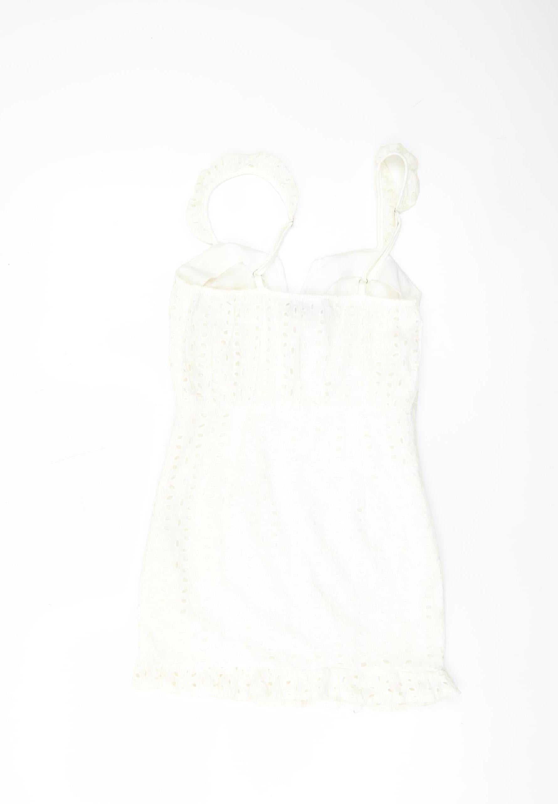PrettyLittleThing Women’s White Cotton Lace Mini Dress UK 4