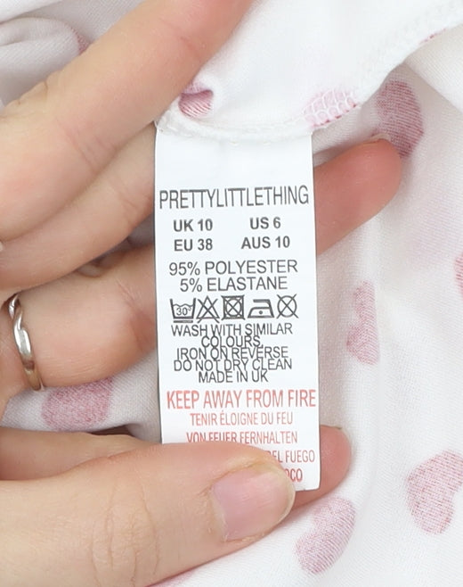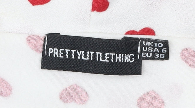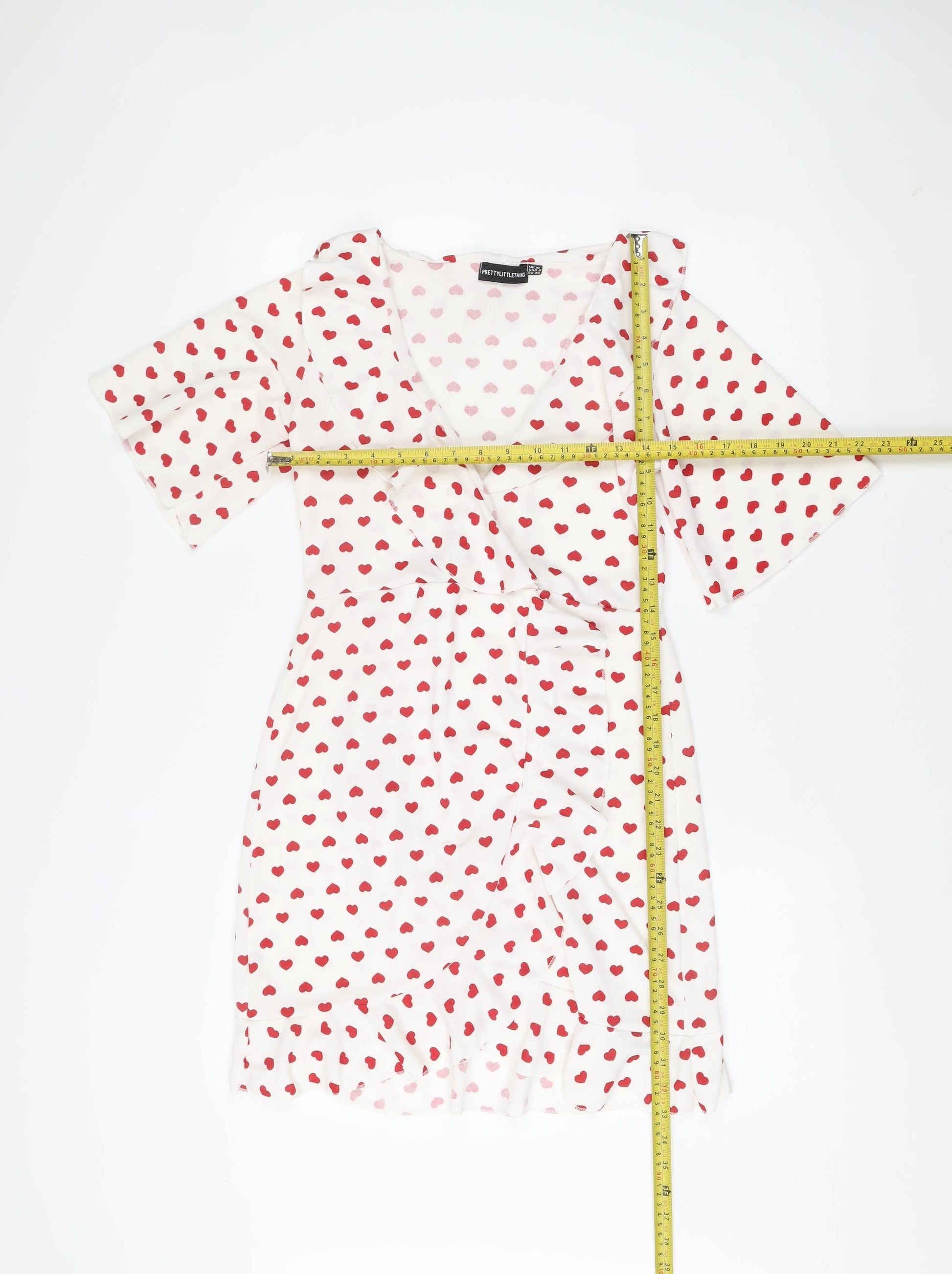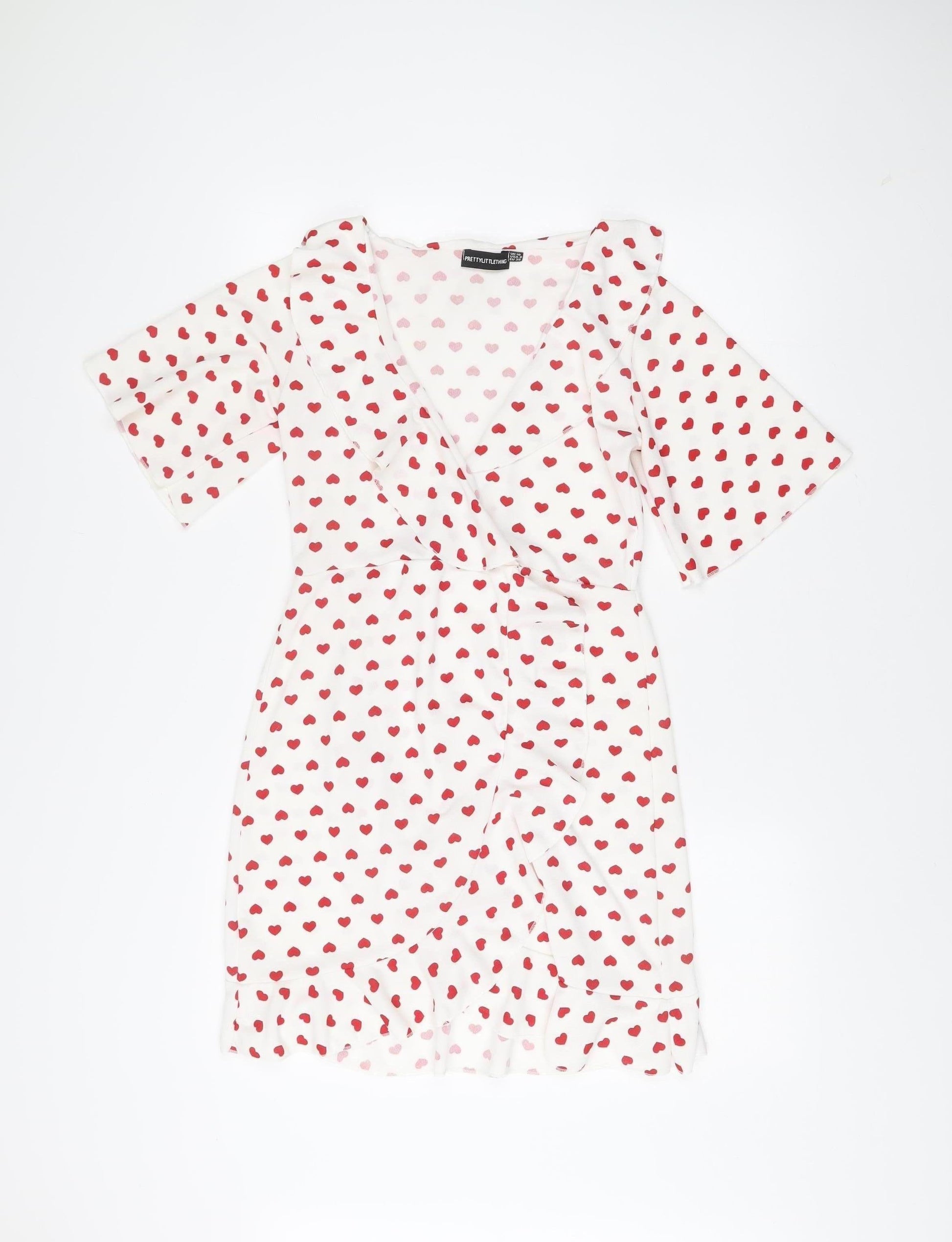 PrettyLittleThing Women White Red Heart Print Wrap Dress Size 10