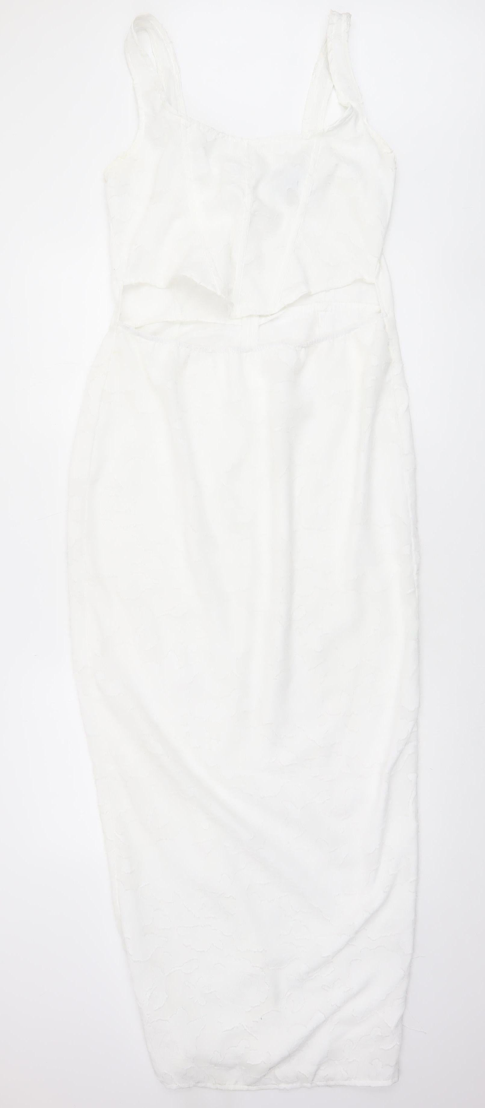 PrettyLittleThing Women White Size 14 Sleeveless Lace Bodycon Midi Dress