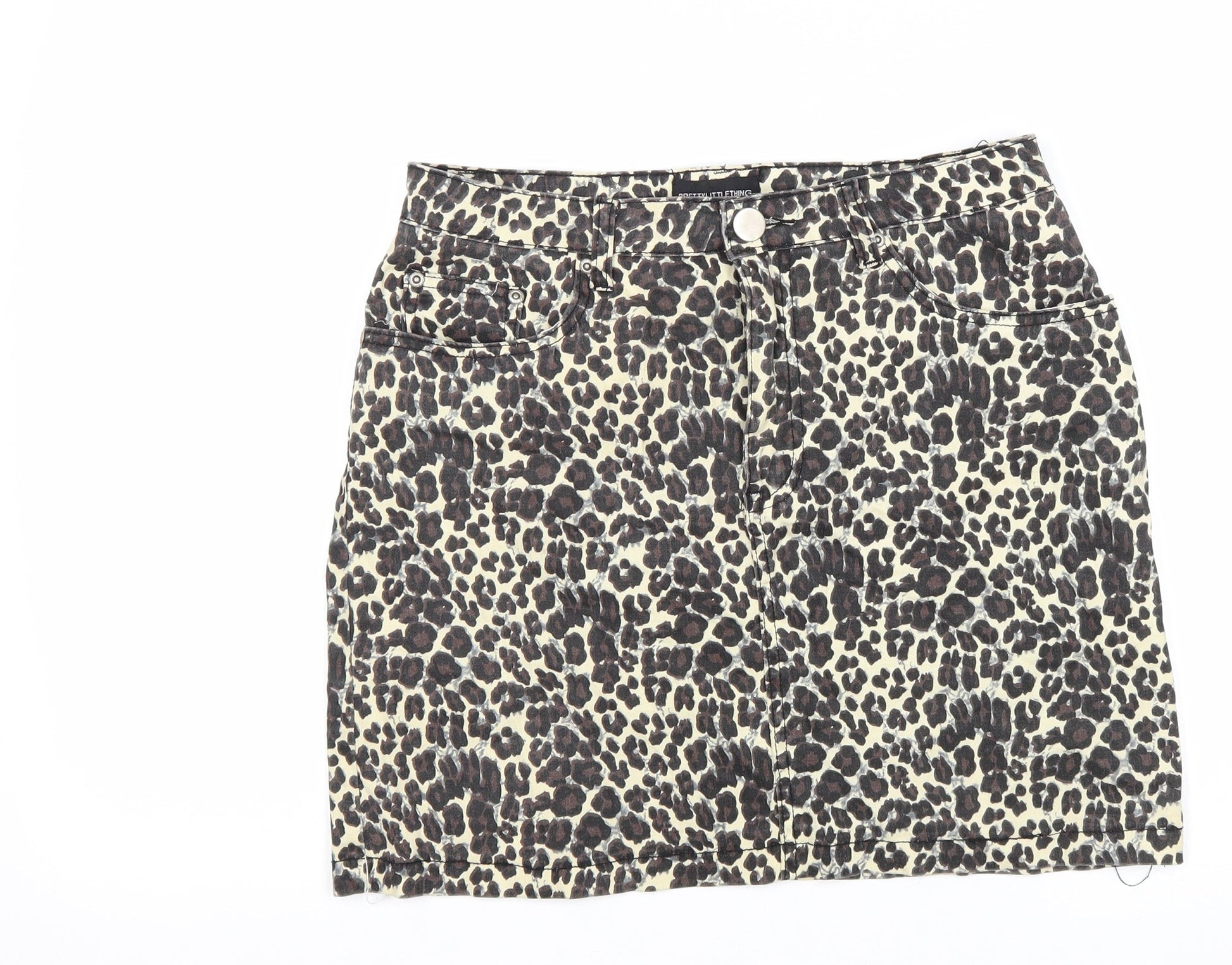 PRETTYLITTLETHING Womens Beige Animal Print Cotton Mini Skirt Size 12 Zip - Leopard Pattern