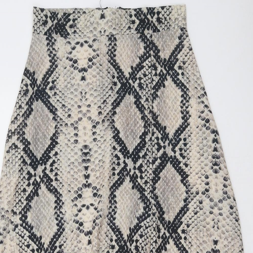 PRETTYLITTLETHING Womens Beige Animal Print Polyester A-Line Skirt Size 8 Zip - Snake Skin Print