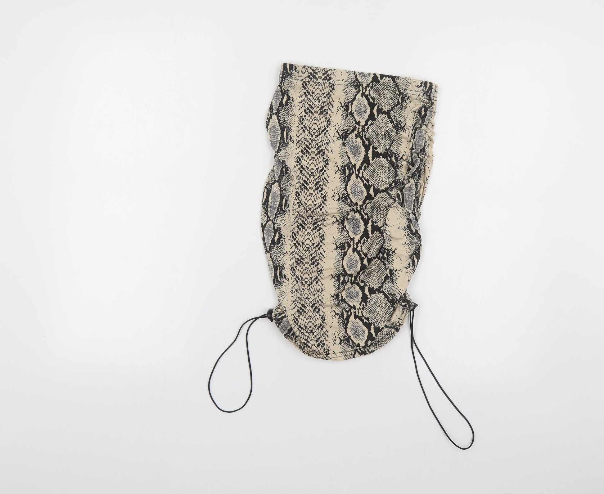 PRETTYLITTLETHING Womens Beige Animal Print Polyester Straight & Pencil Skirt Size 4 - Snake Print Ruched