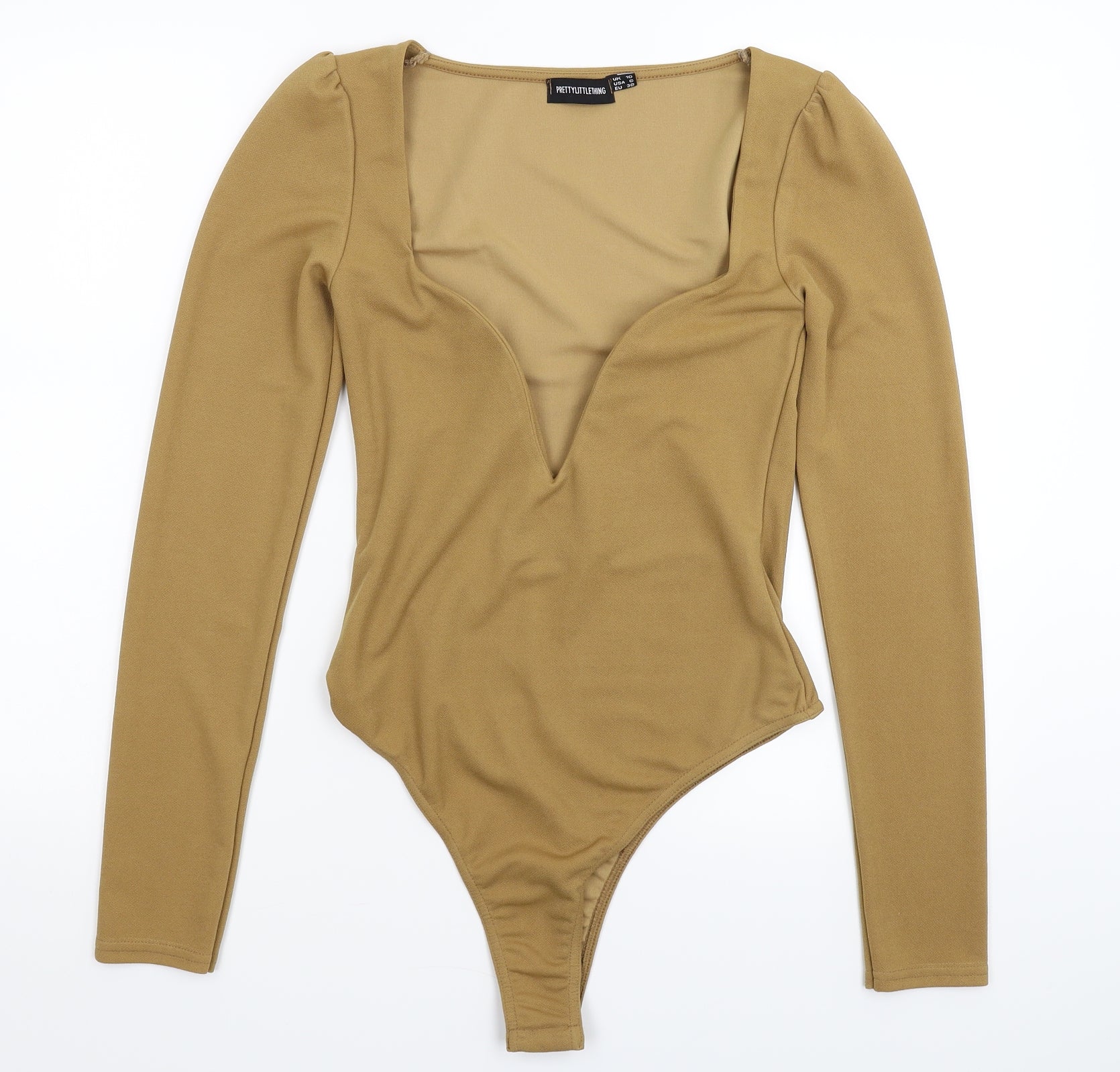 PRETTYLITTLETHING Womens Beige Bodysuit One-Piece Size 10