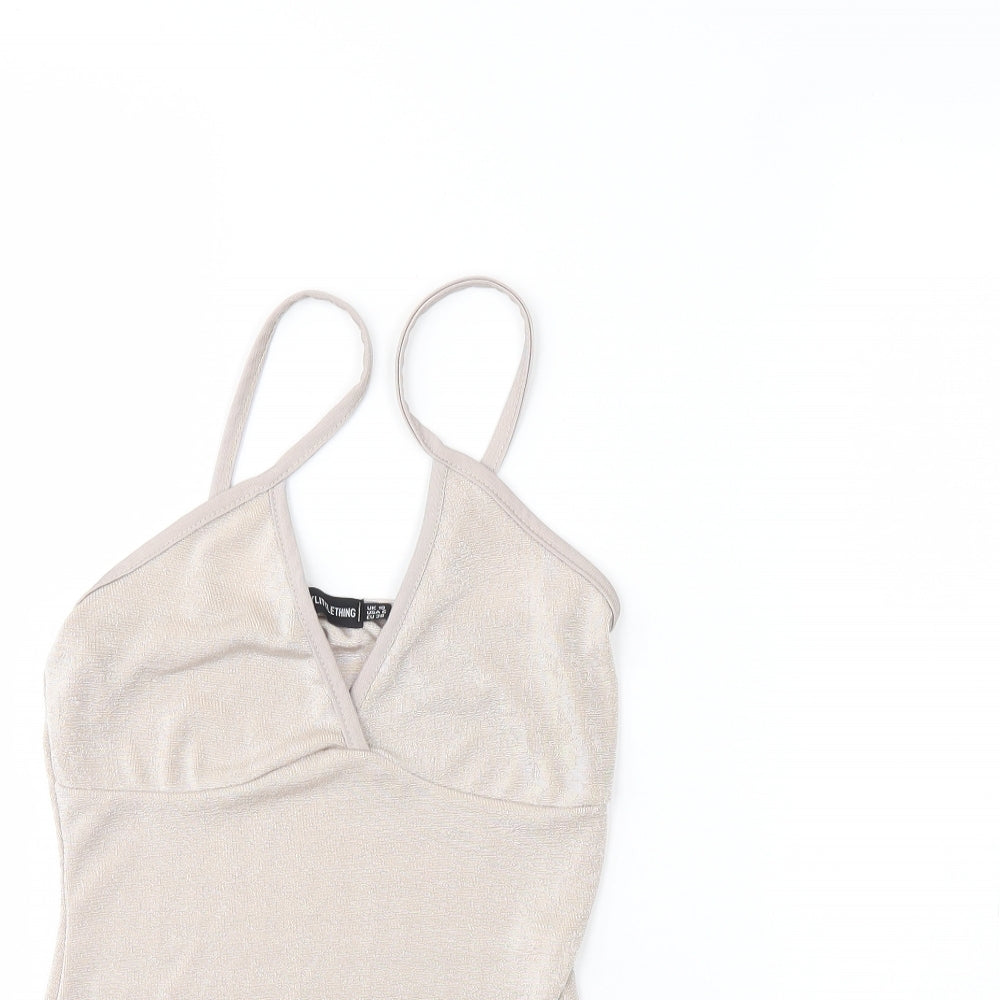 PRETTYLITTLETHING Womens Beige Bodysuit One-Piece Size 10