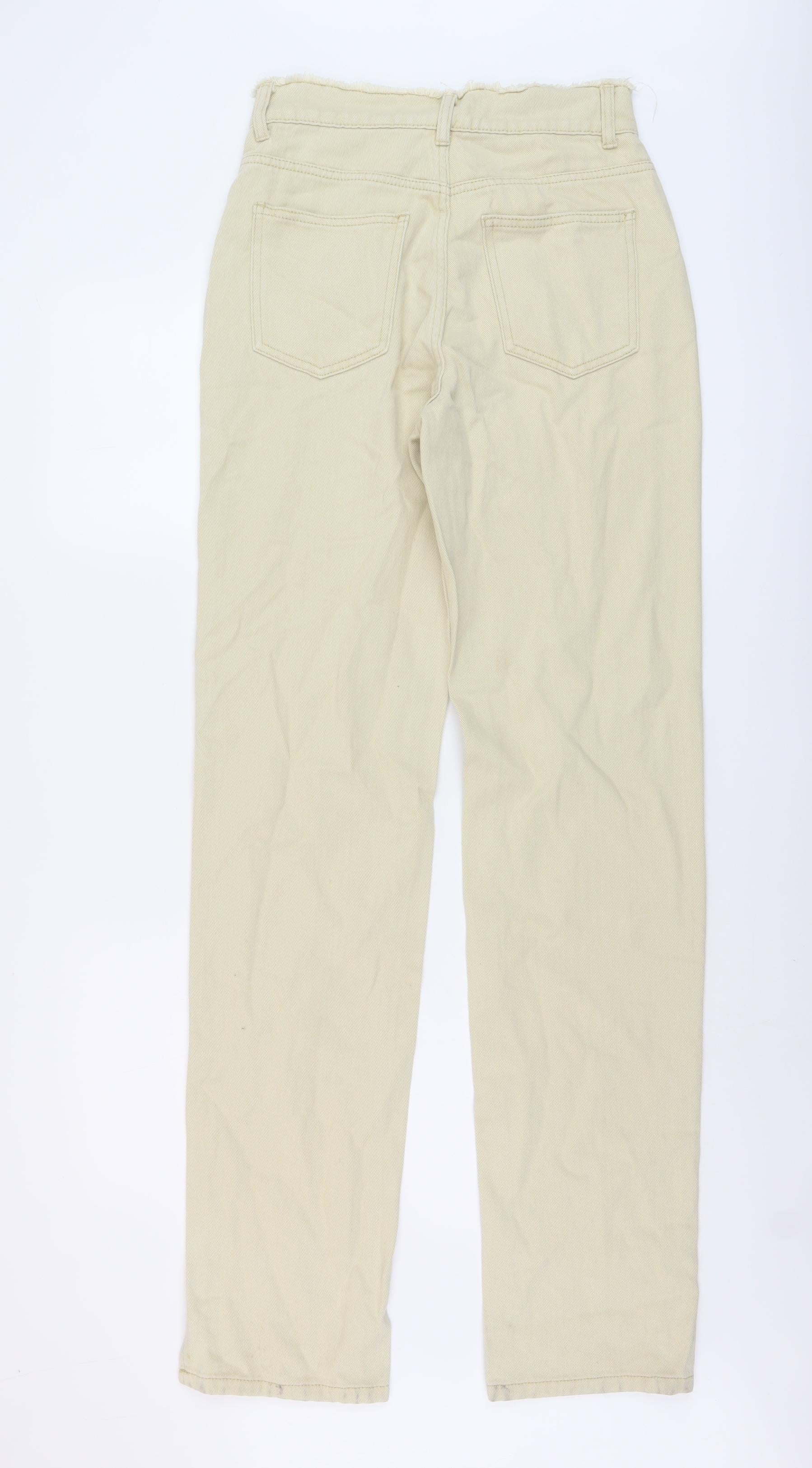 PRETTYLITTLETHING Womens Beige Cotton Straight Jeans Size 8 L35 in Regular Button