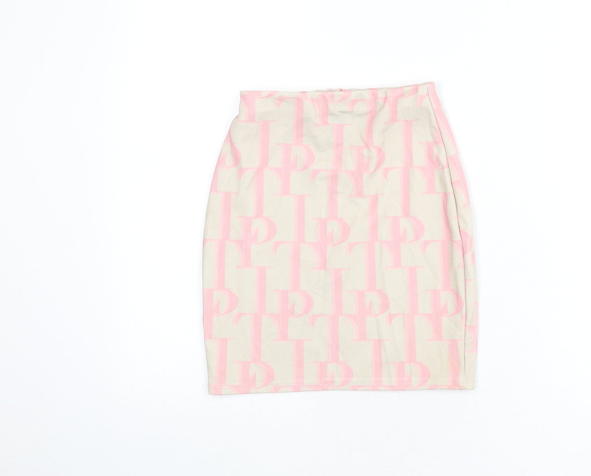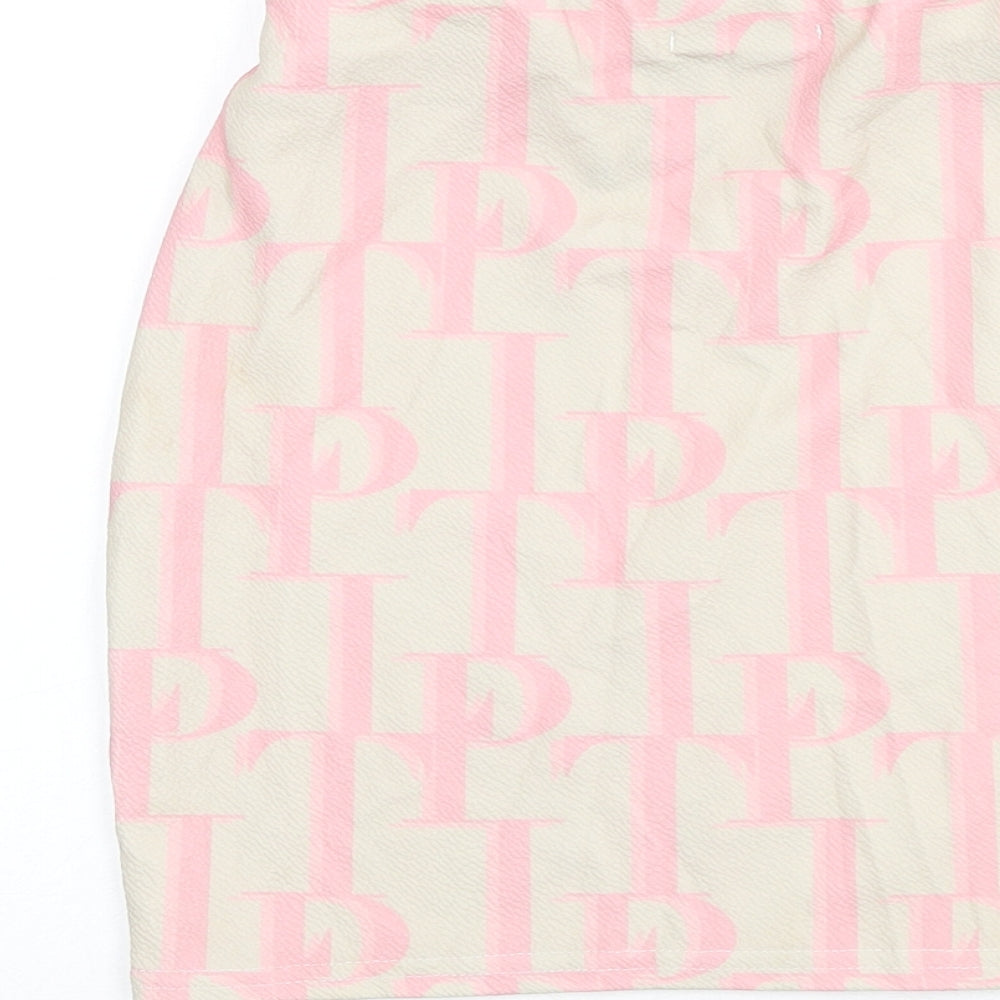 PRETTYLITTLETHING Womens Beige Geometric Polyester Bandage Skirt Size 4 - PLT