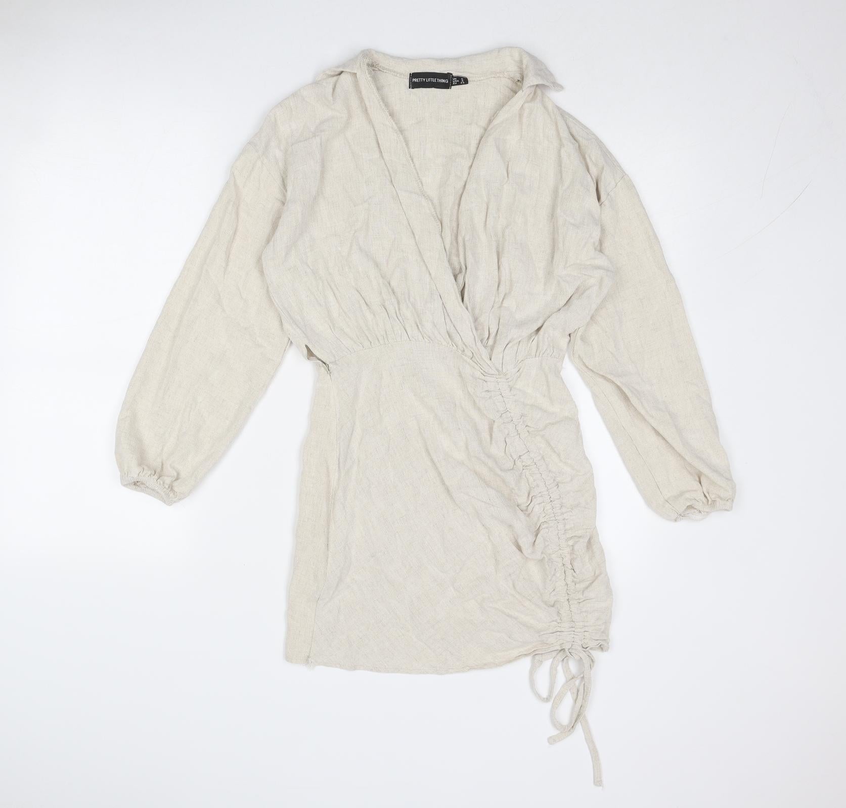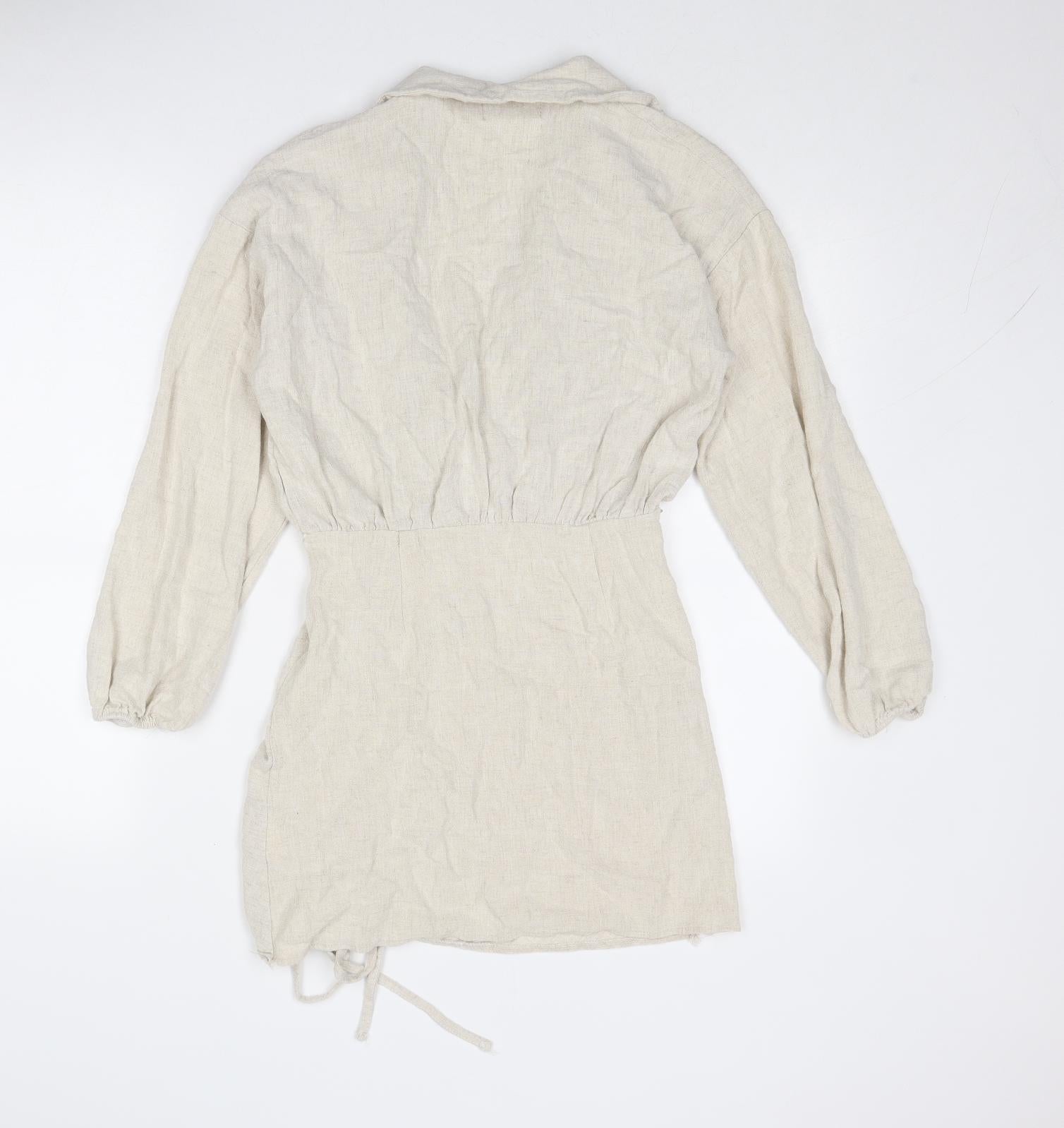 PRETTYLITTLETHING Womens Beige Linen A-Line Size 8 Collared Zip