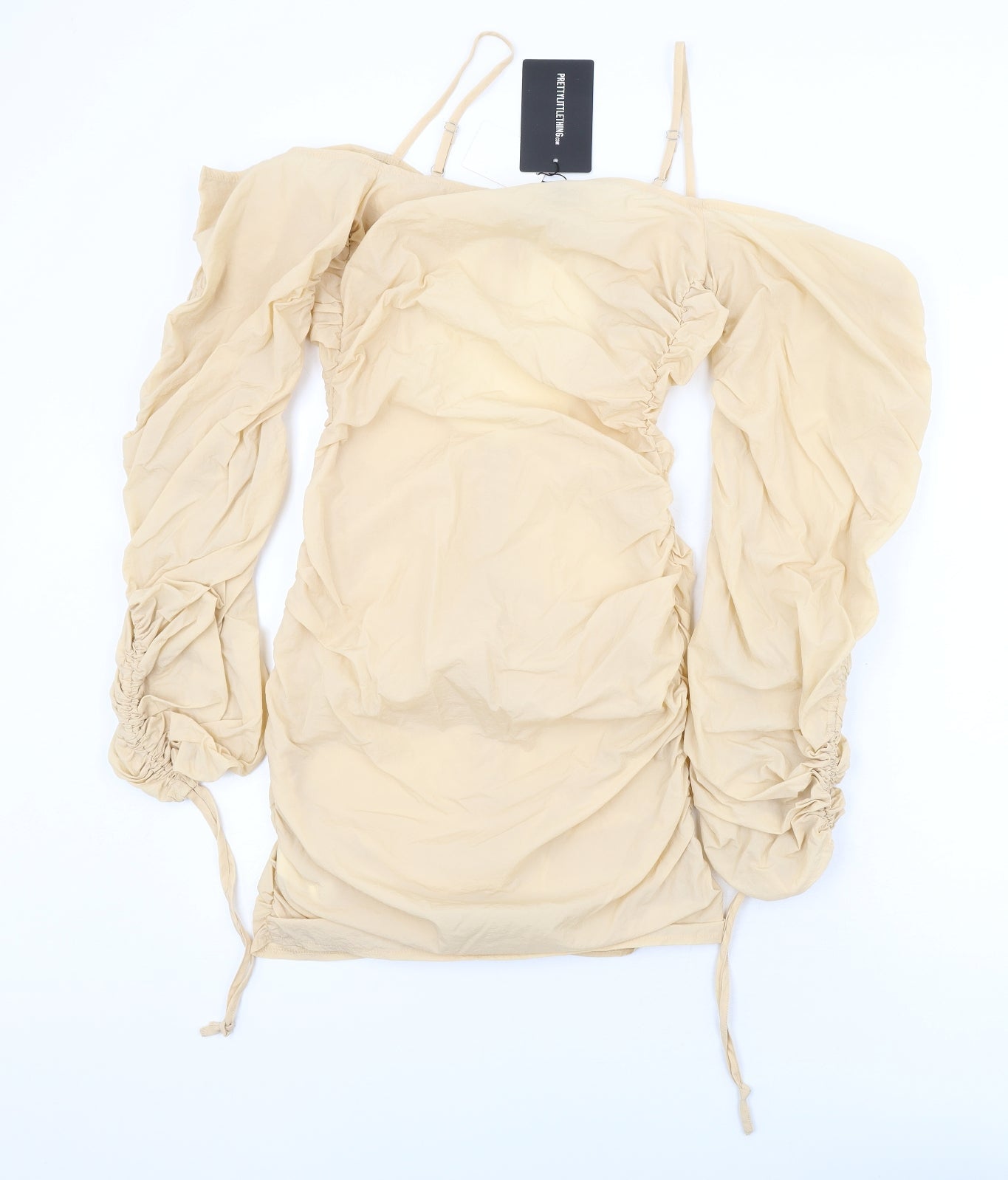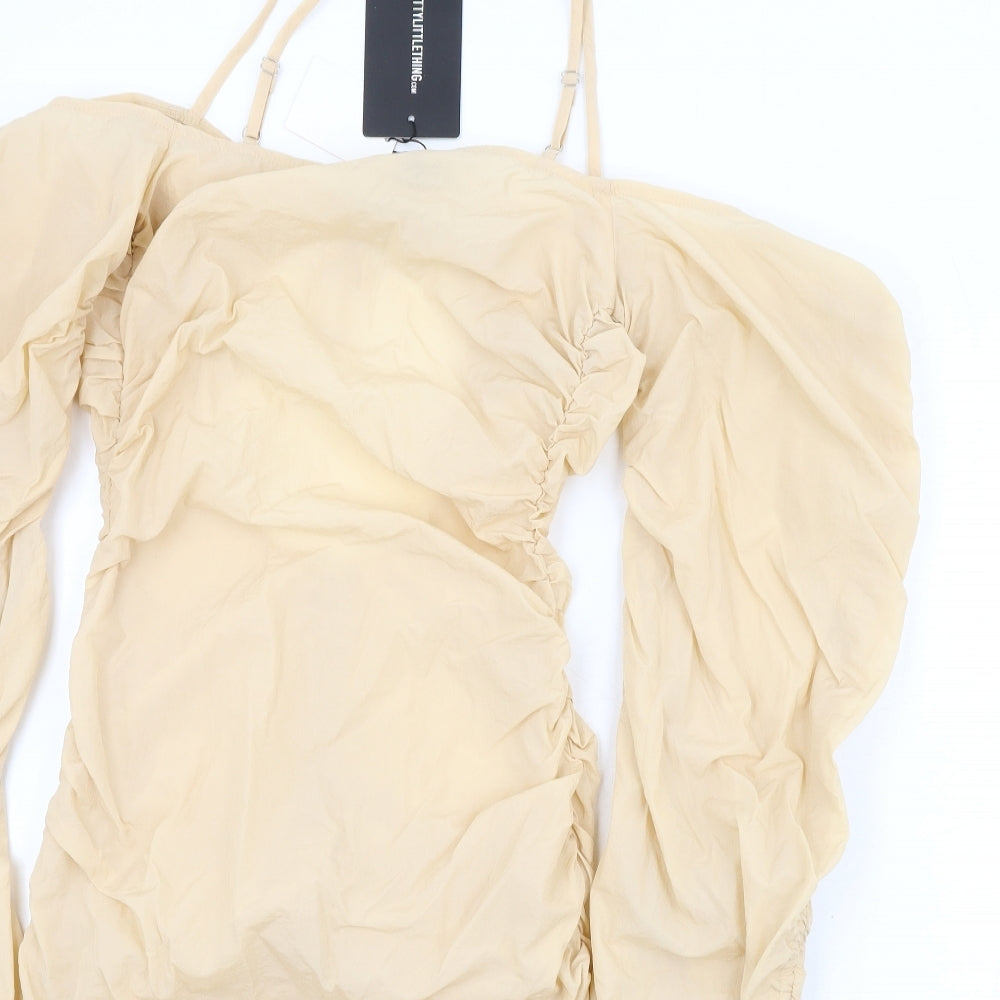 PRETTYLITTLETHING Womens Beige Nylon Bodycon Size 8 Square Neck Zip