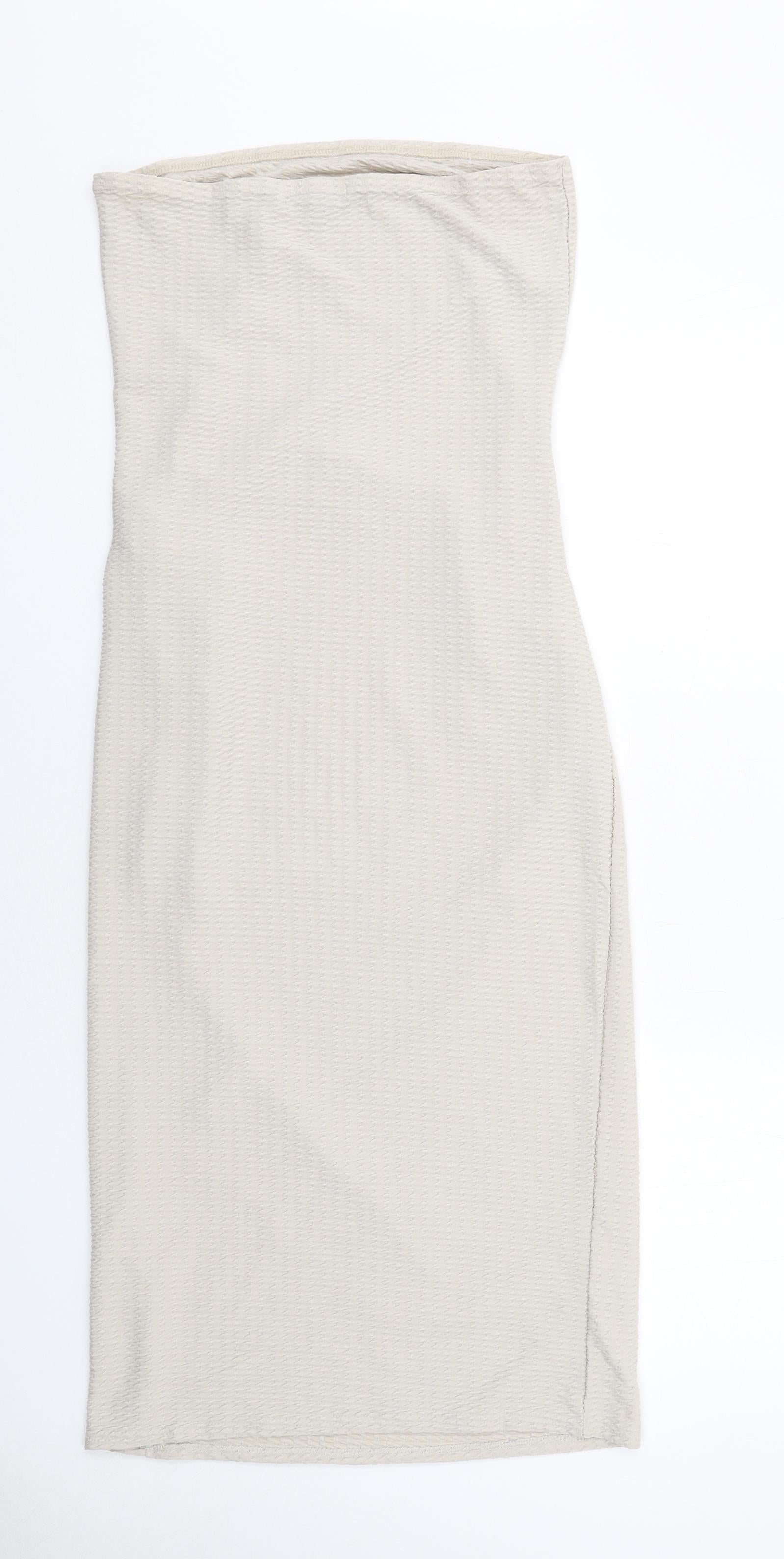 PRETTYLITTLETHING Womens Beige Polyester A-Line Size 8 Off the Shoulder Pullover