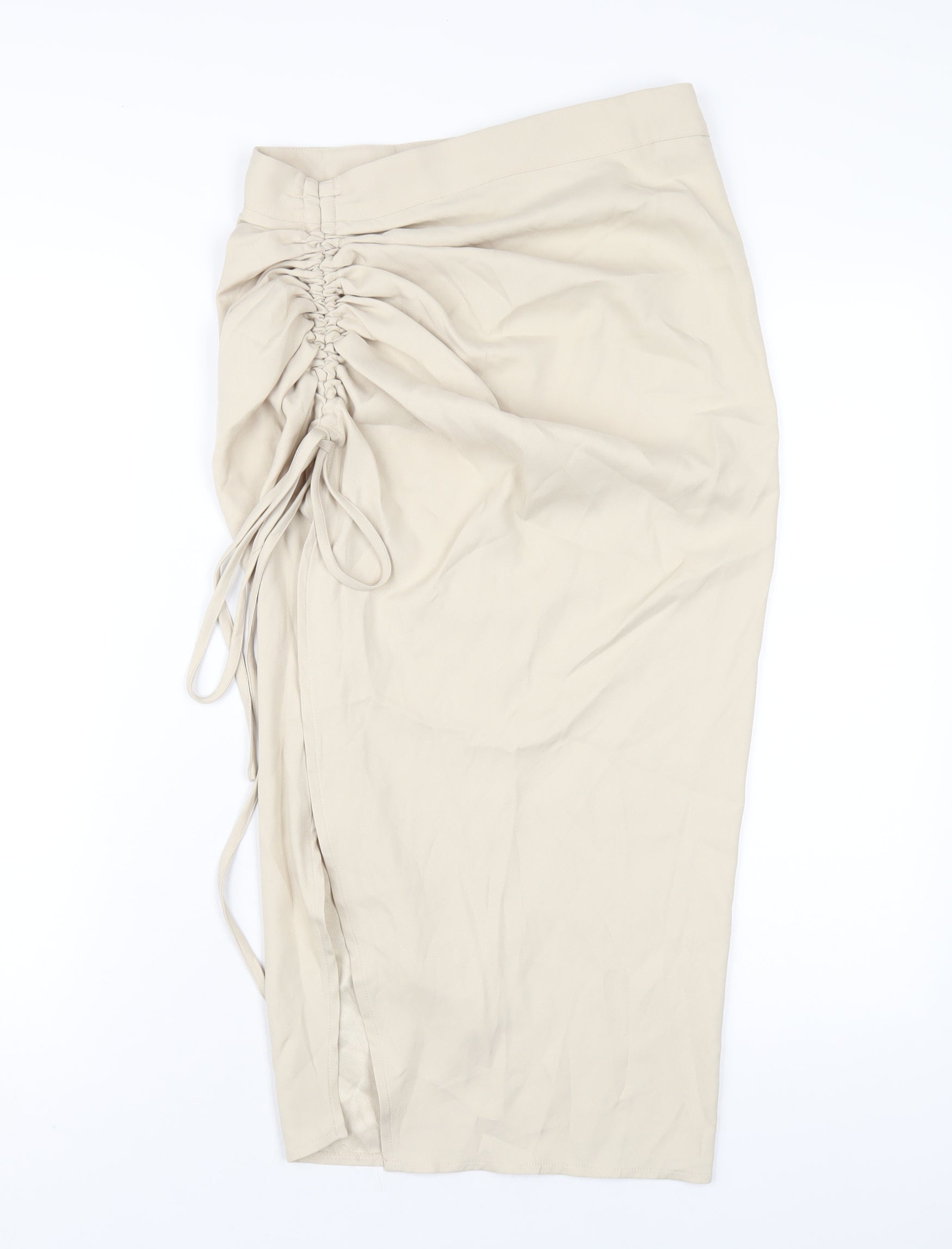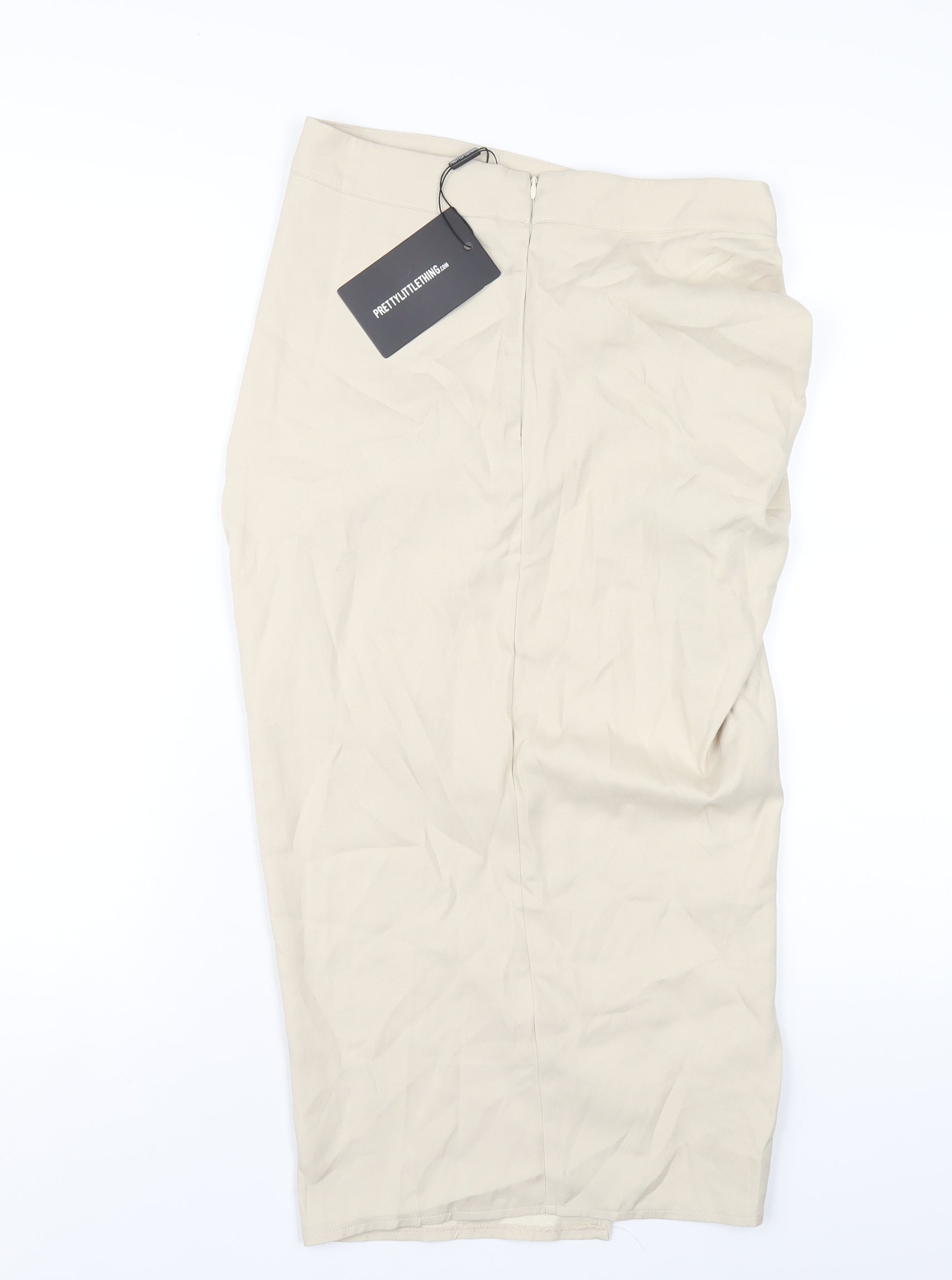 PRETTYLITTLETHING Womens Beige Polyester A-Line Skirt Size 10 Zip