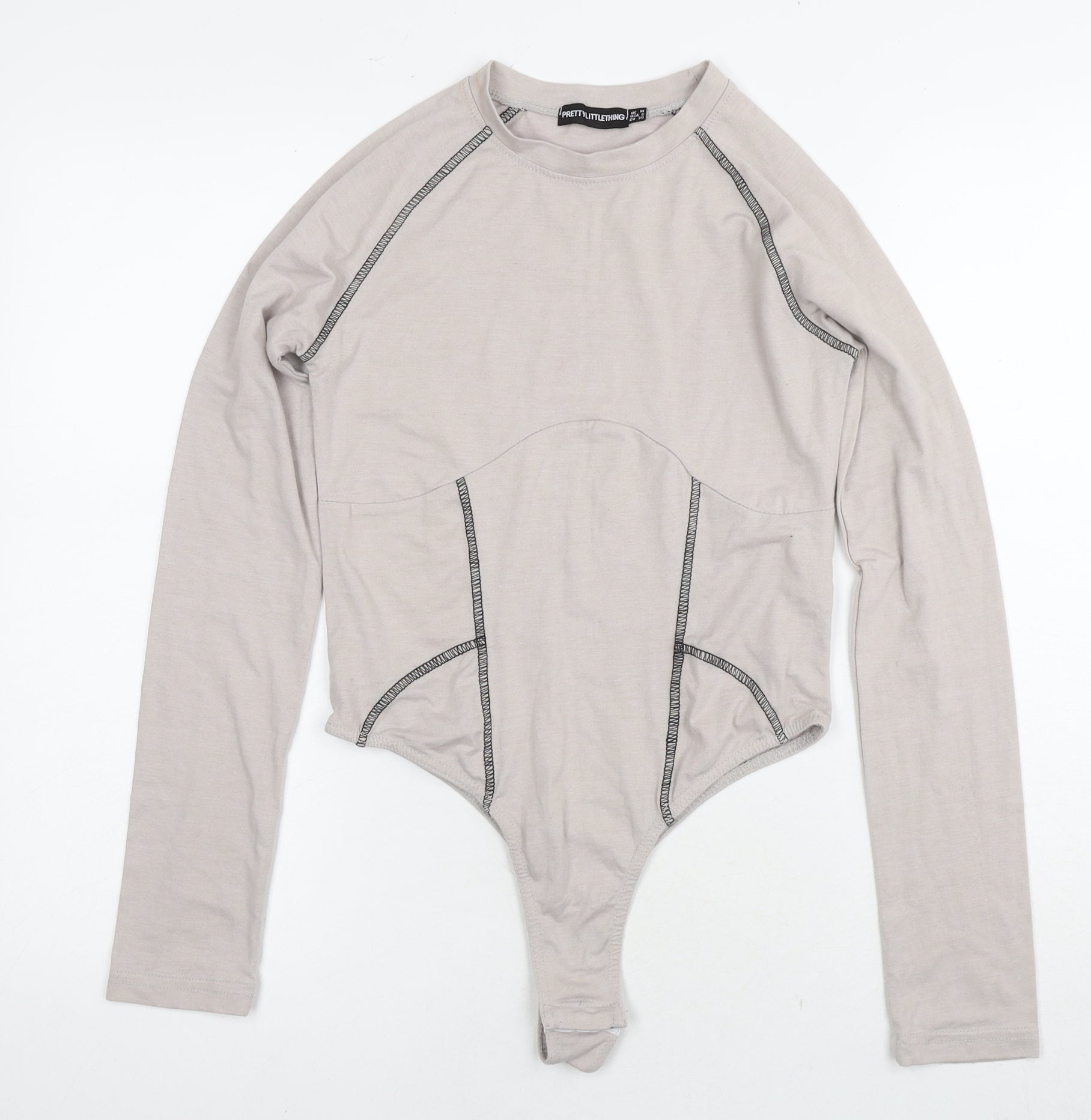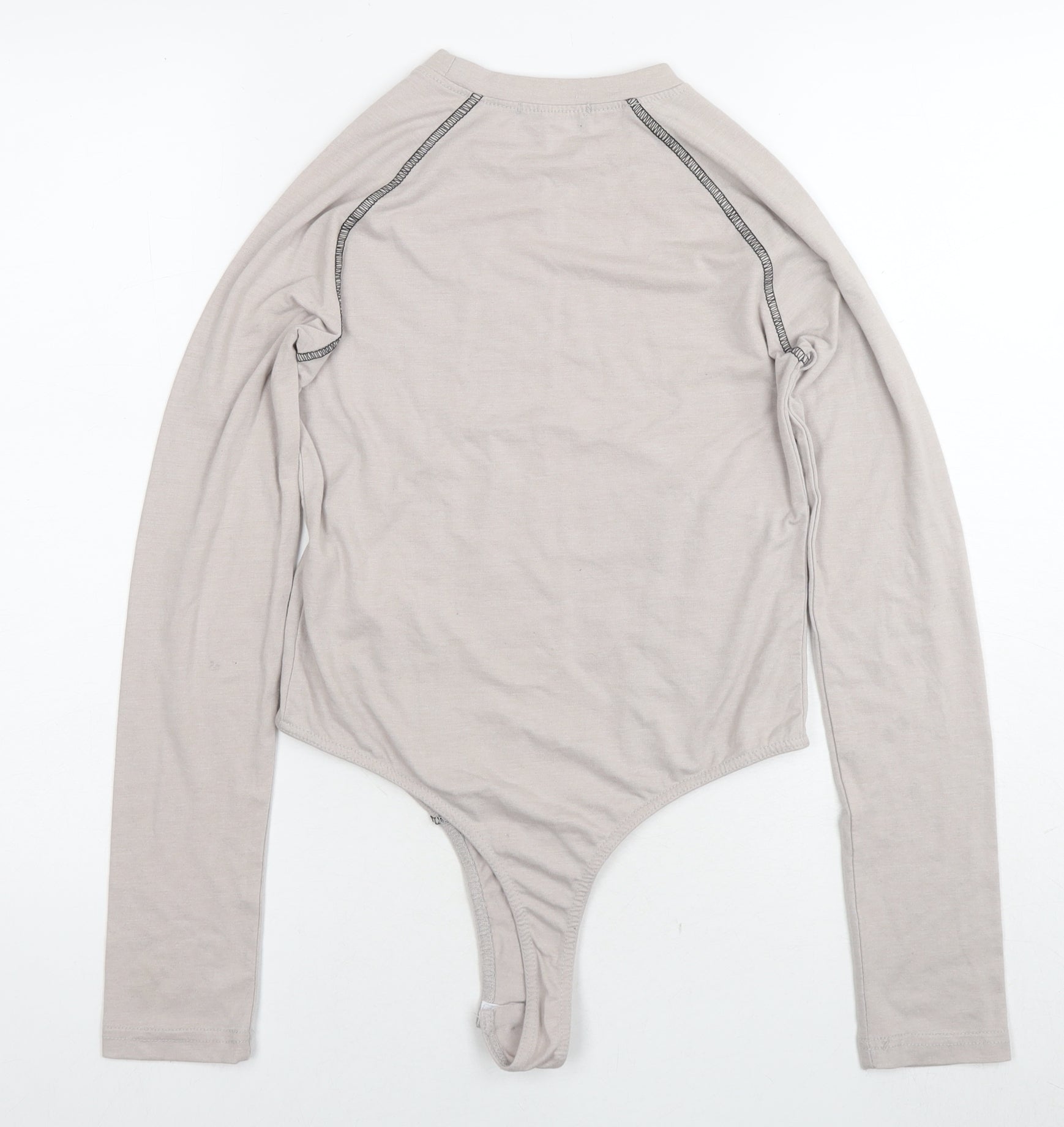 PRETTYLITTLETHING Womens Beige Polyester Bodysuit One-Piece Size 10 Snap