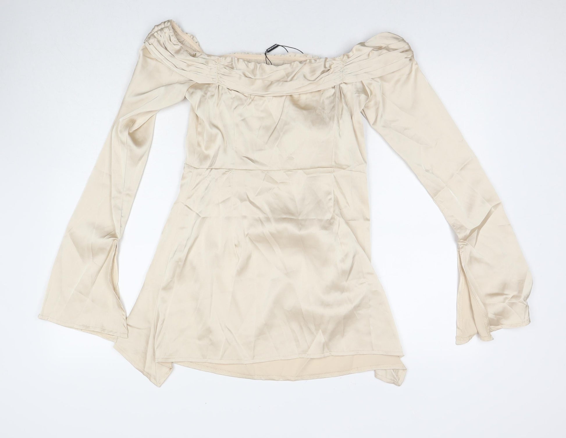 PRETTYLITTLETHING Womens Beige Polyester Shift Size 12 Off the Shoulder Zip