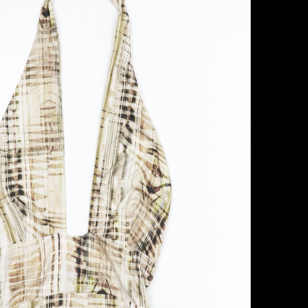 PRETTYLITTLETHING Womens Beige Striped Leotard One-Piece Size 8