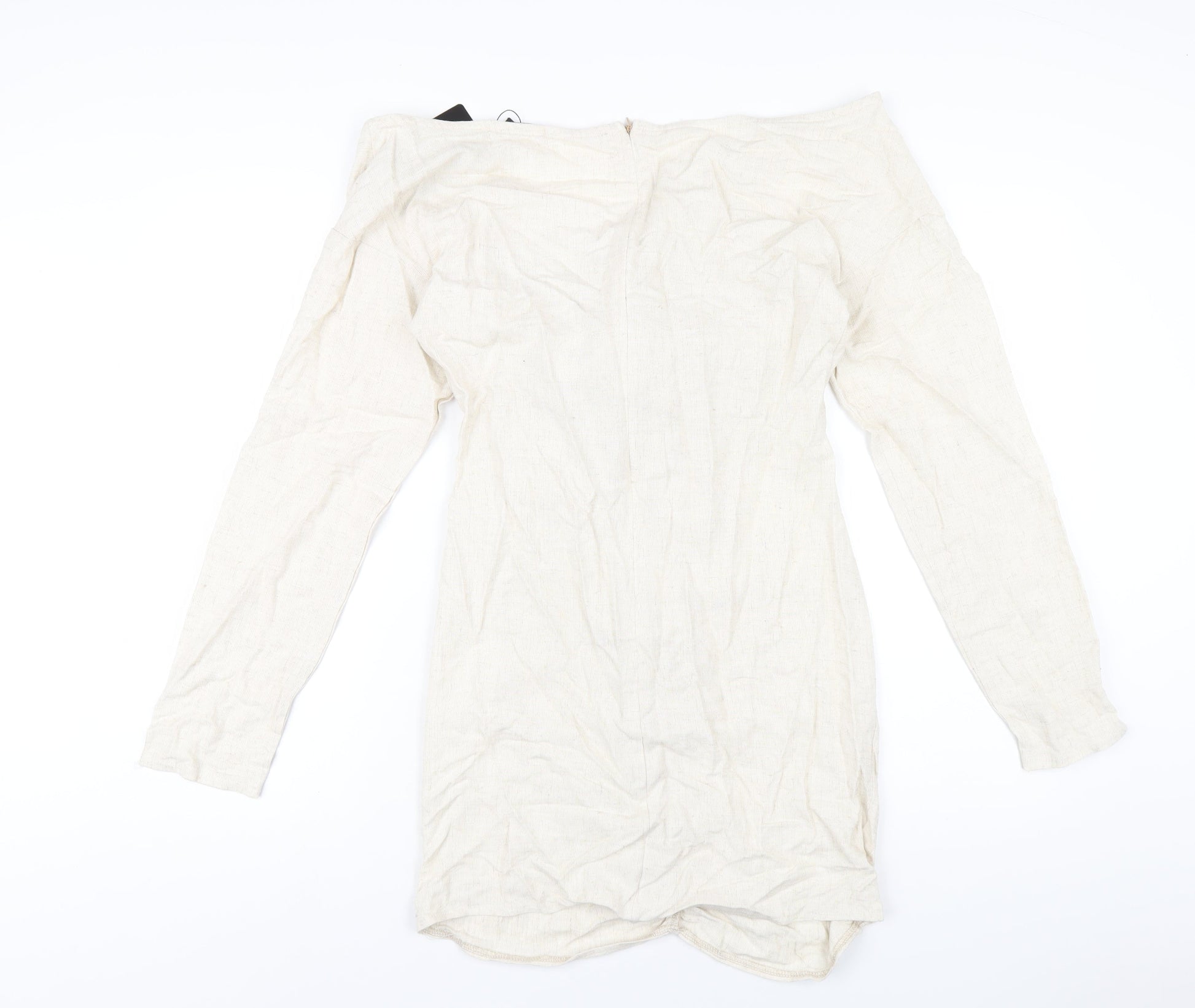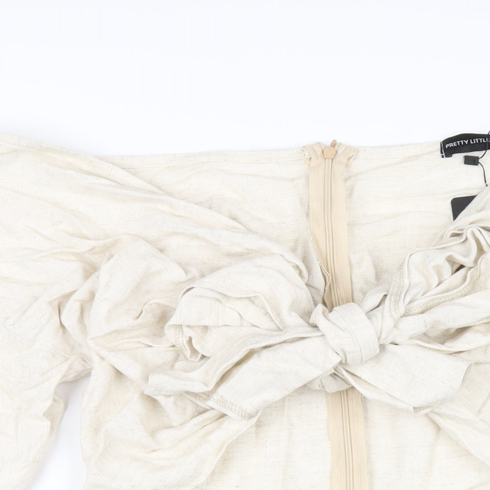 PRETTYLITTLETHING Womens Beige Viscose Mini Size 14 V-Neck Zip