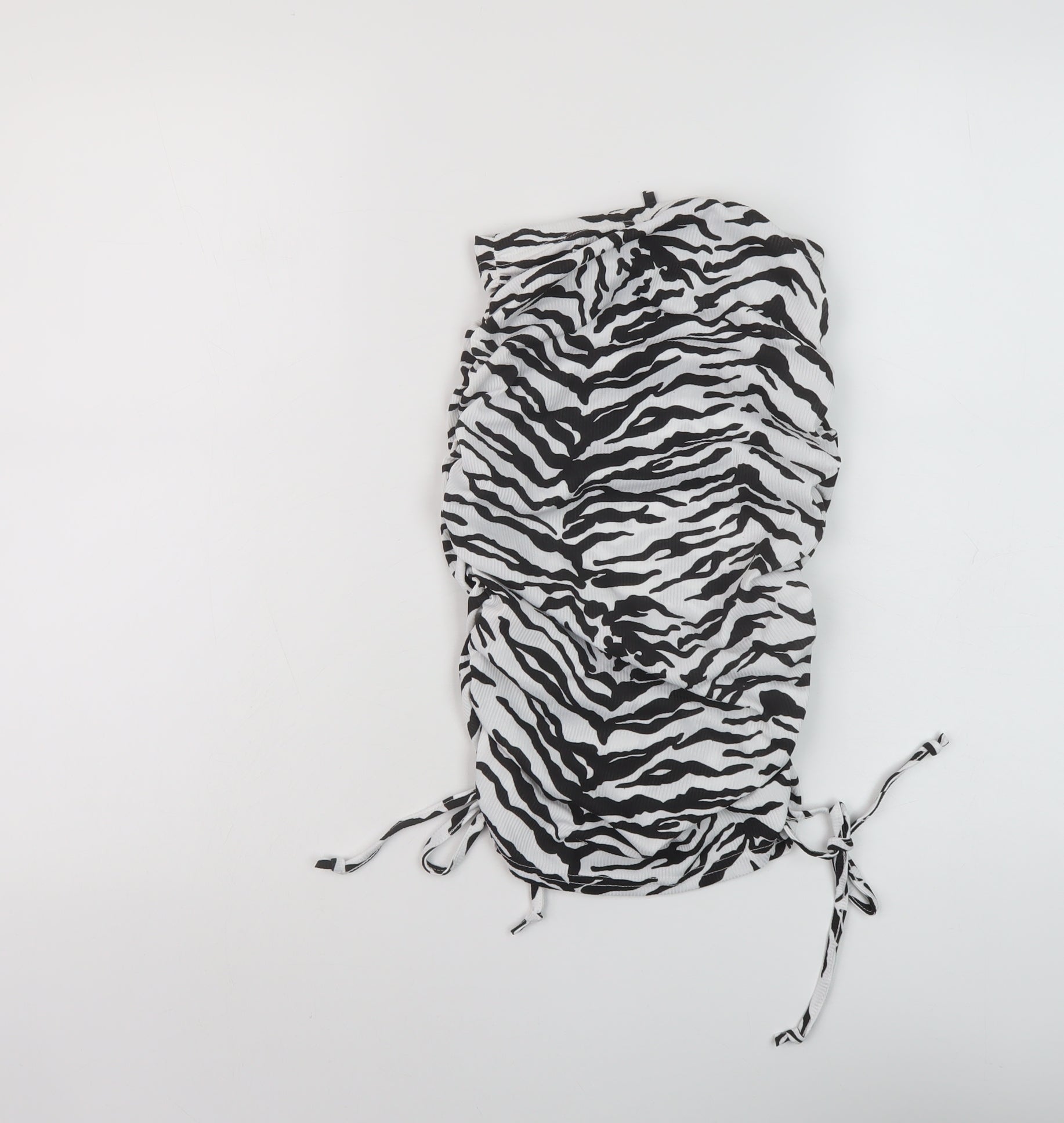 PRETTYLITTLETHING Womens Black Animal Print Polyester Mini Skirt Size 4