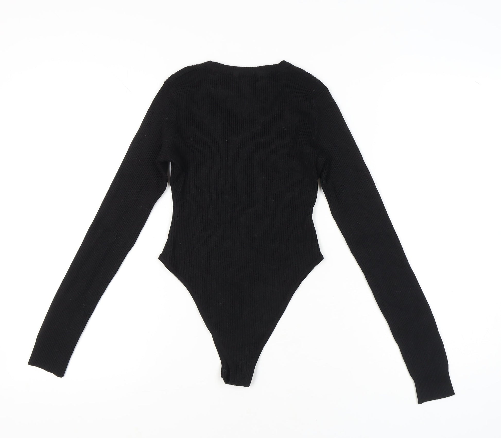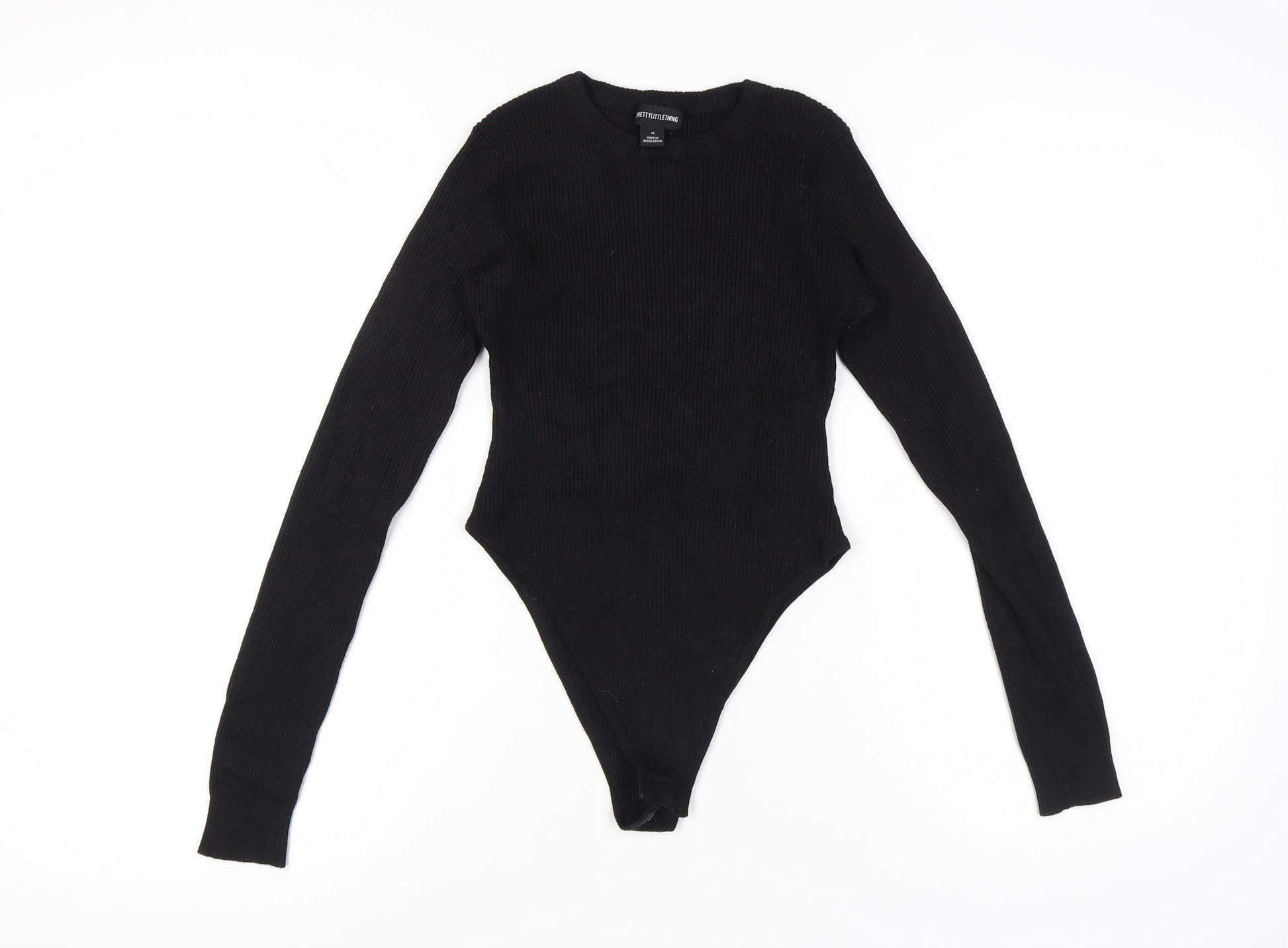PrettyLittleThing Womens Black Bodysuit Medium Long Sleeve Crew Neck