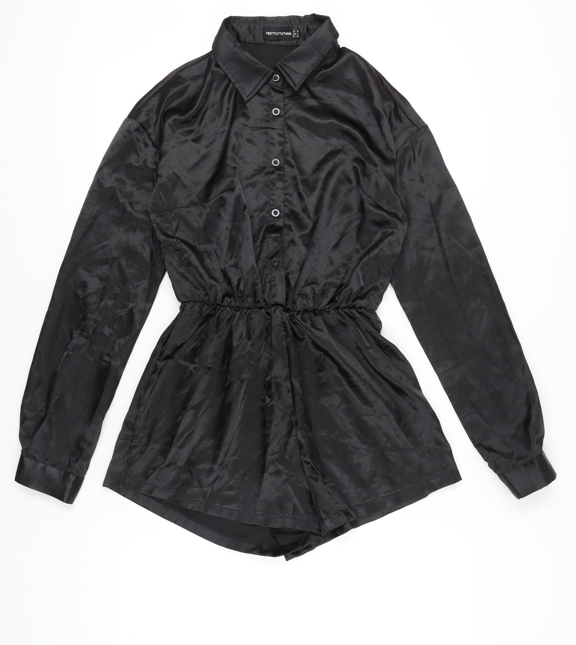 PrettyLittleThing Womens Black Collared Long Sleeve Playsuit Size 10