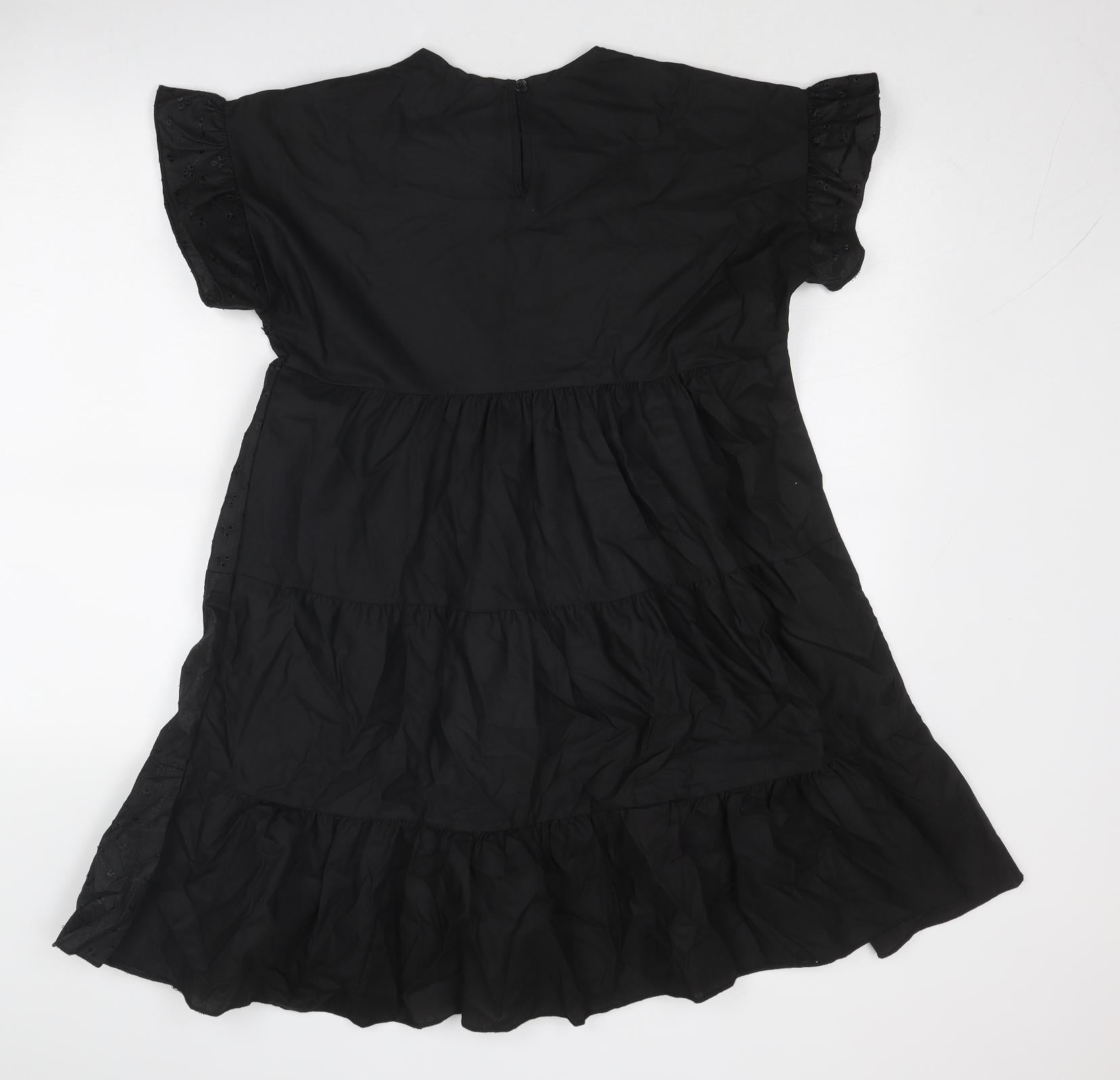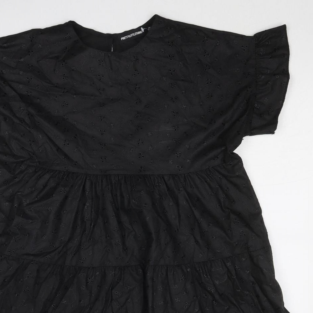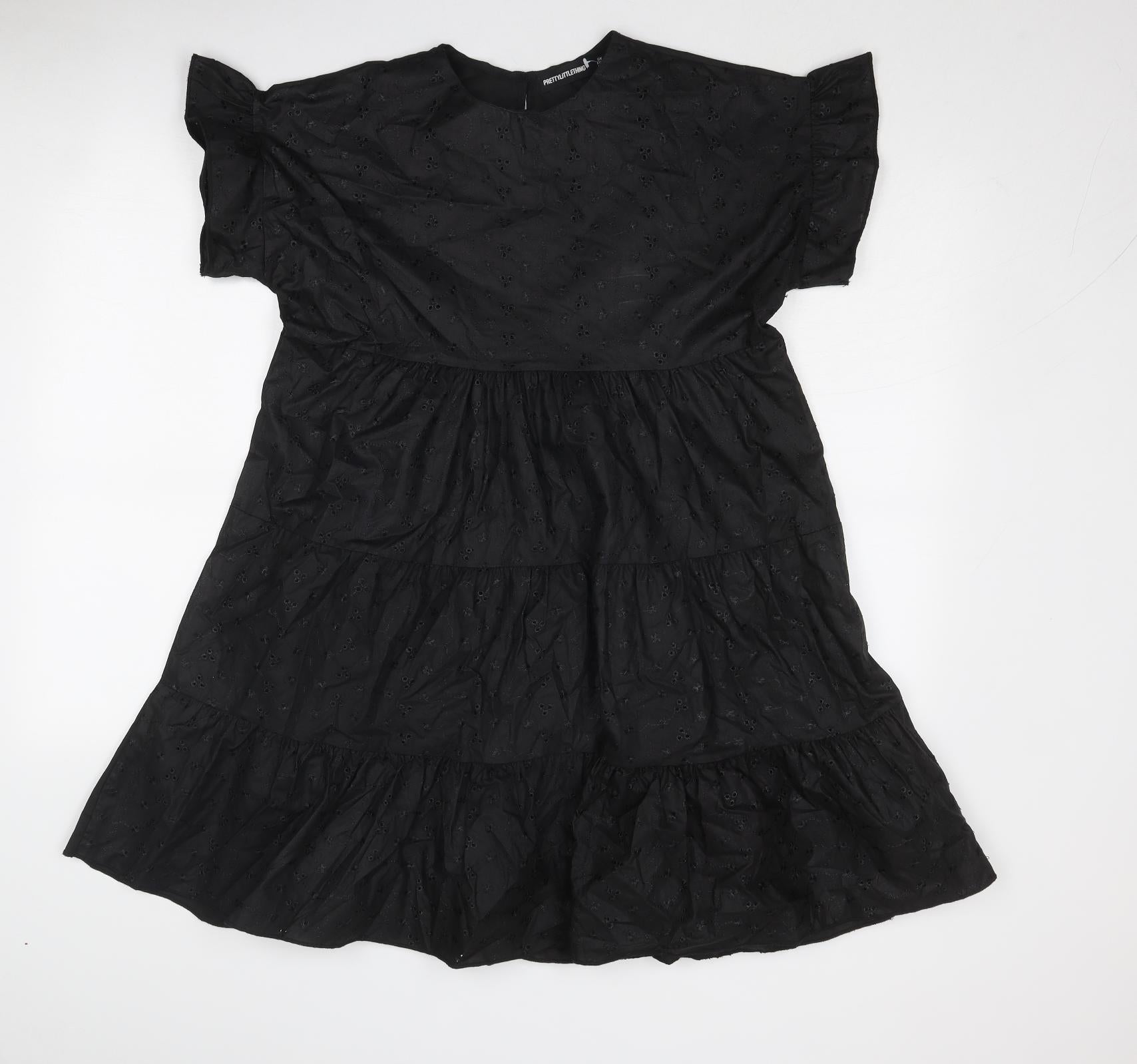 PRETTYLITTLETHING Womens Black Cotton A-Line Size 8 Boat Neck Button - Tiered