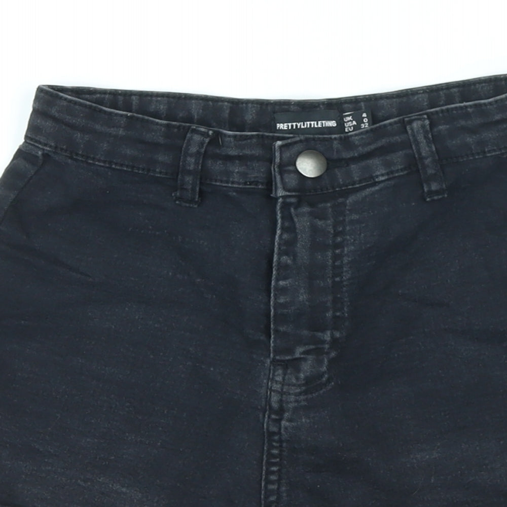 PRETTYLITTLETHING Womens Black Cotton Hot Pants Shorts Size 4 L3 in Regular Zip
