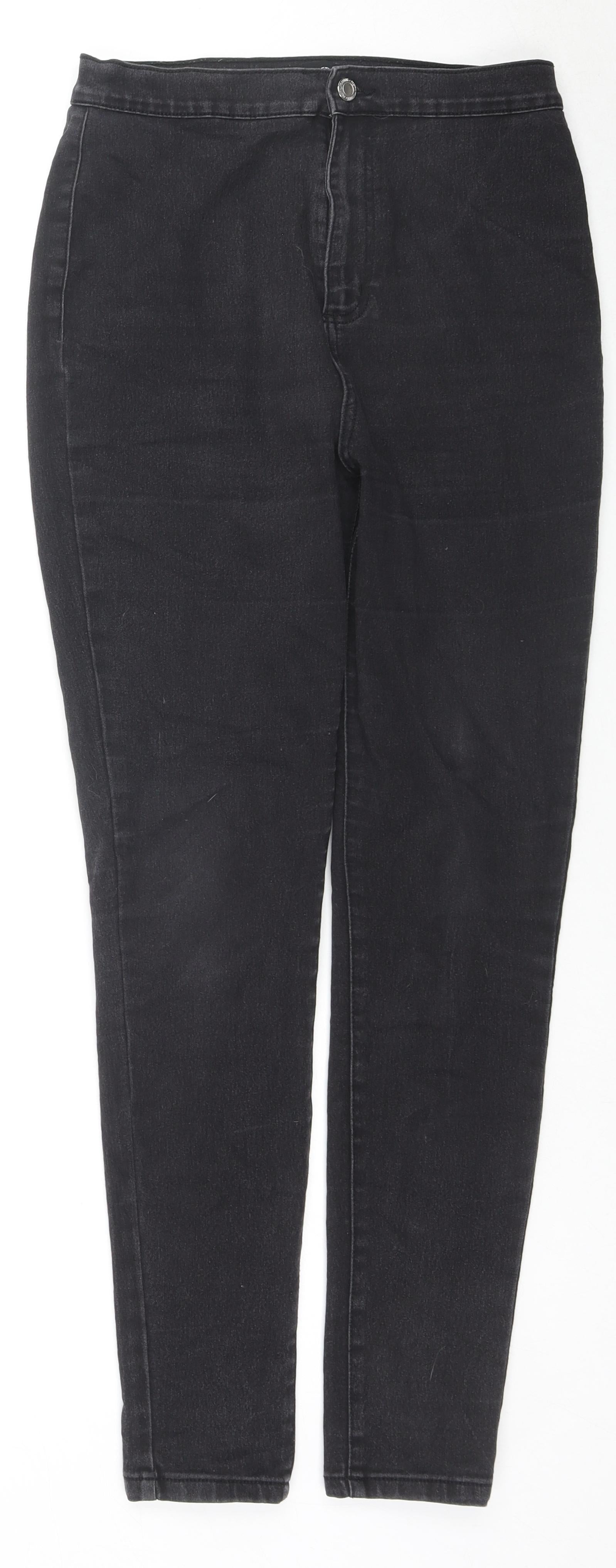 PRETTYLITTLETHING Womens Black Cotton Skinny Jeans Size 12 L28 in Regular Zip