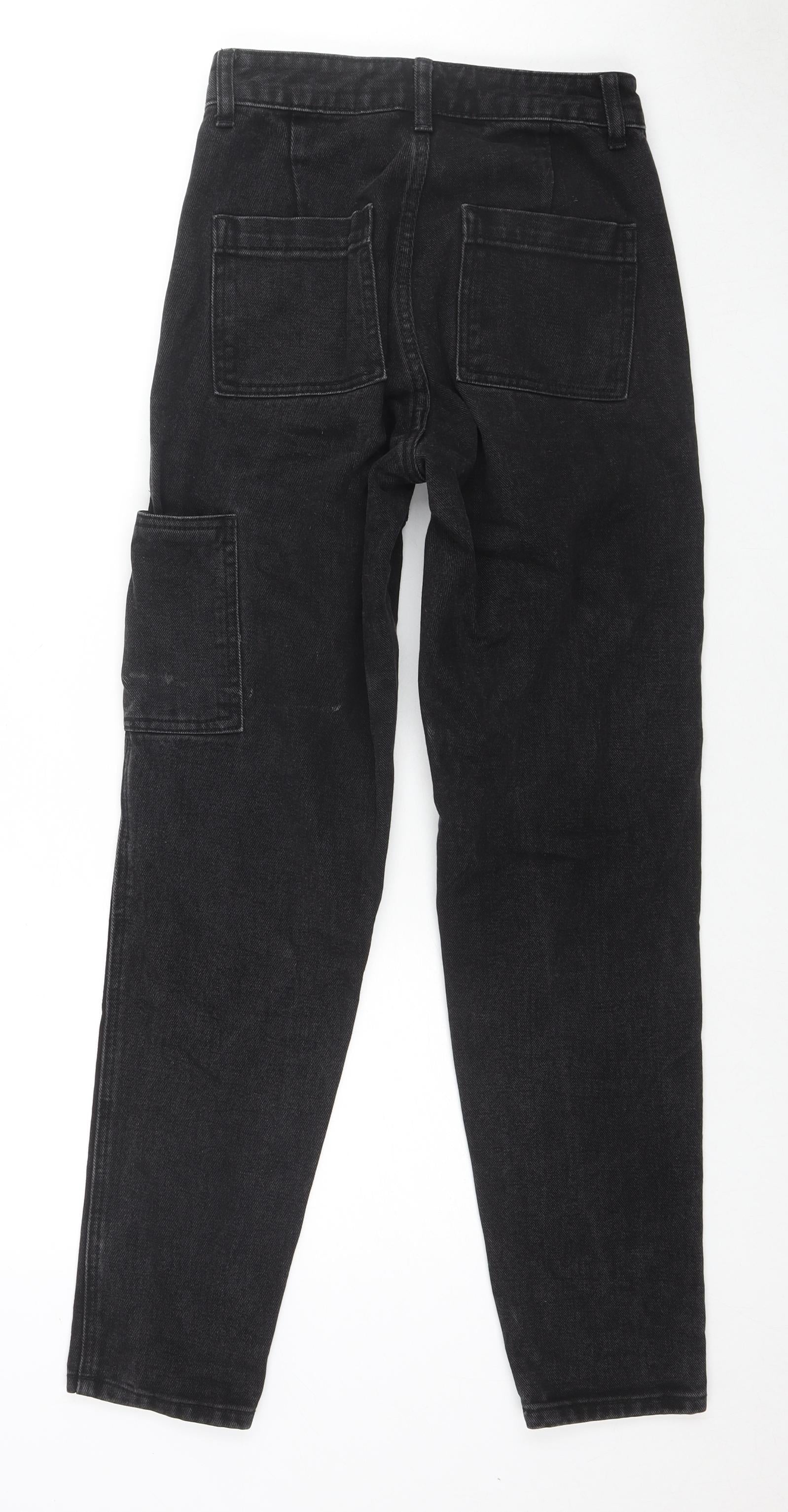 PRETTYLITTLETHING Womens Black Cotton Straight Jeans Size 4 L27 in Regular Zip - Cargo Style